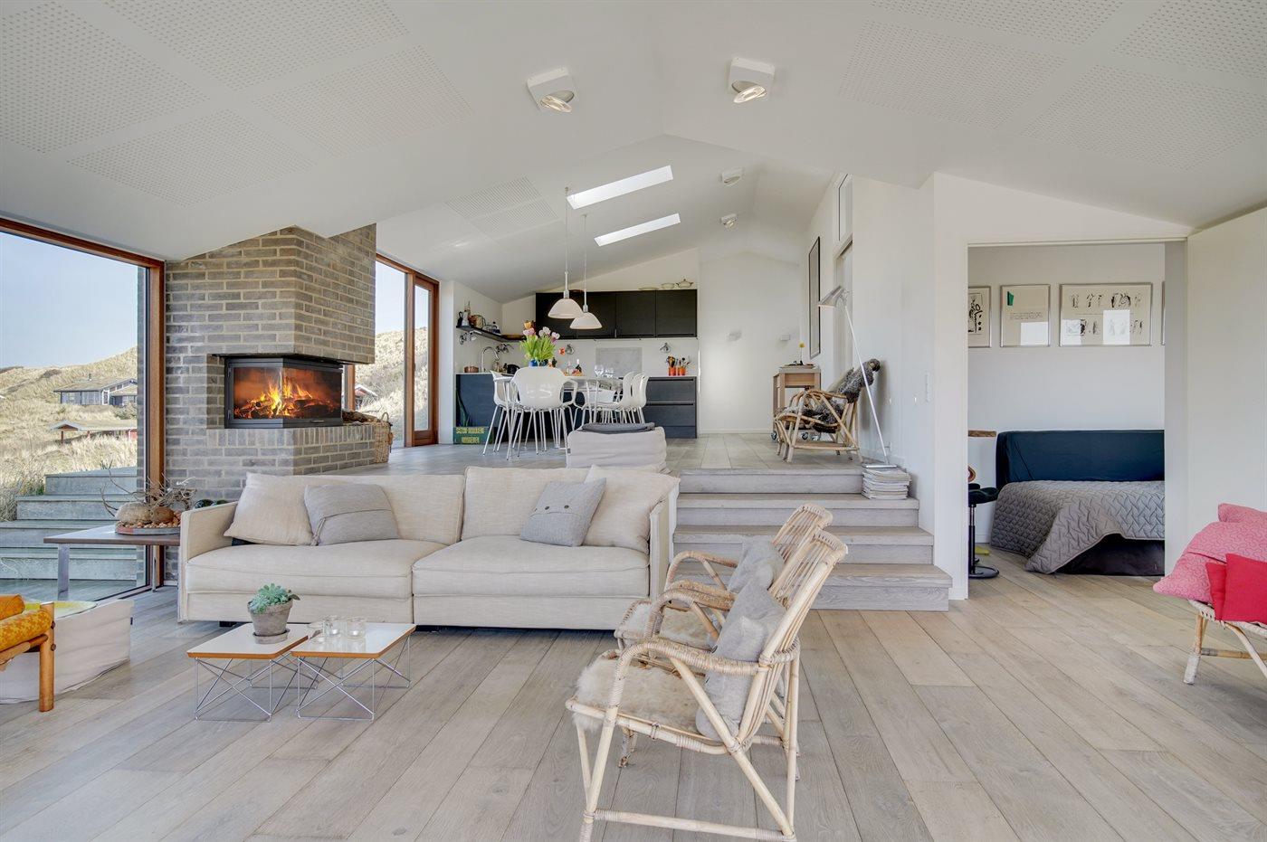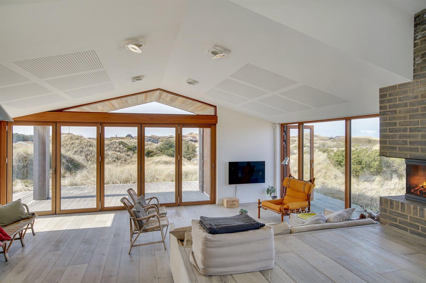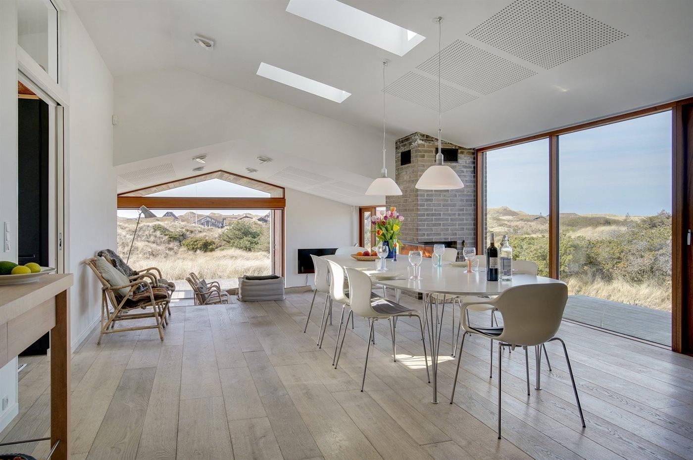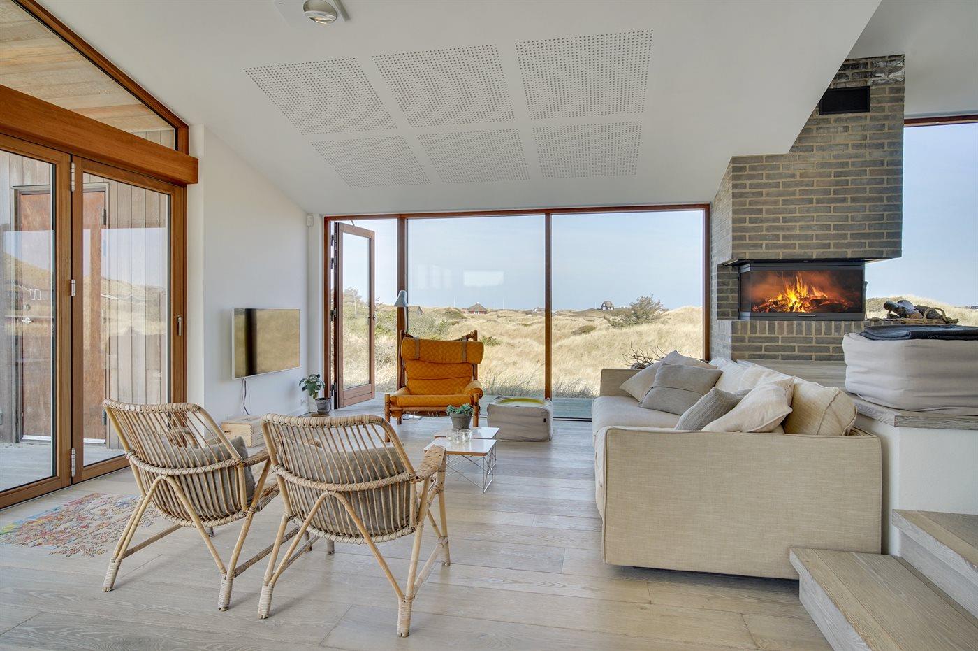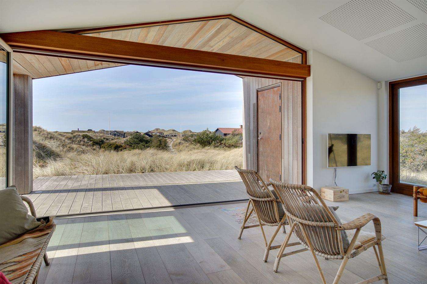 Helt fantastisk sommerhus i den helt rigtige stil med en flot udsigt over Vesterhavet og det omkringliggende klitområde. Det rummelige hus ligger for enden af lukket vej, i flot natur, på en meget stor grund nær skøn badestrand.