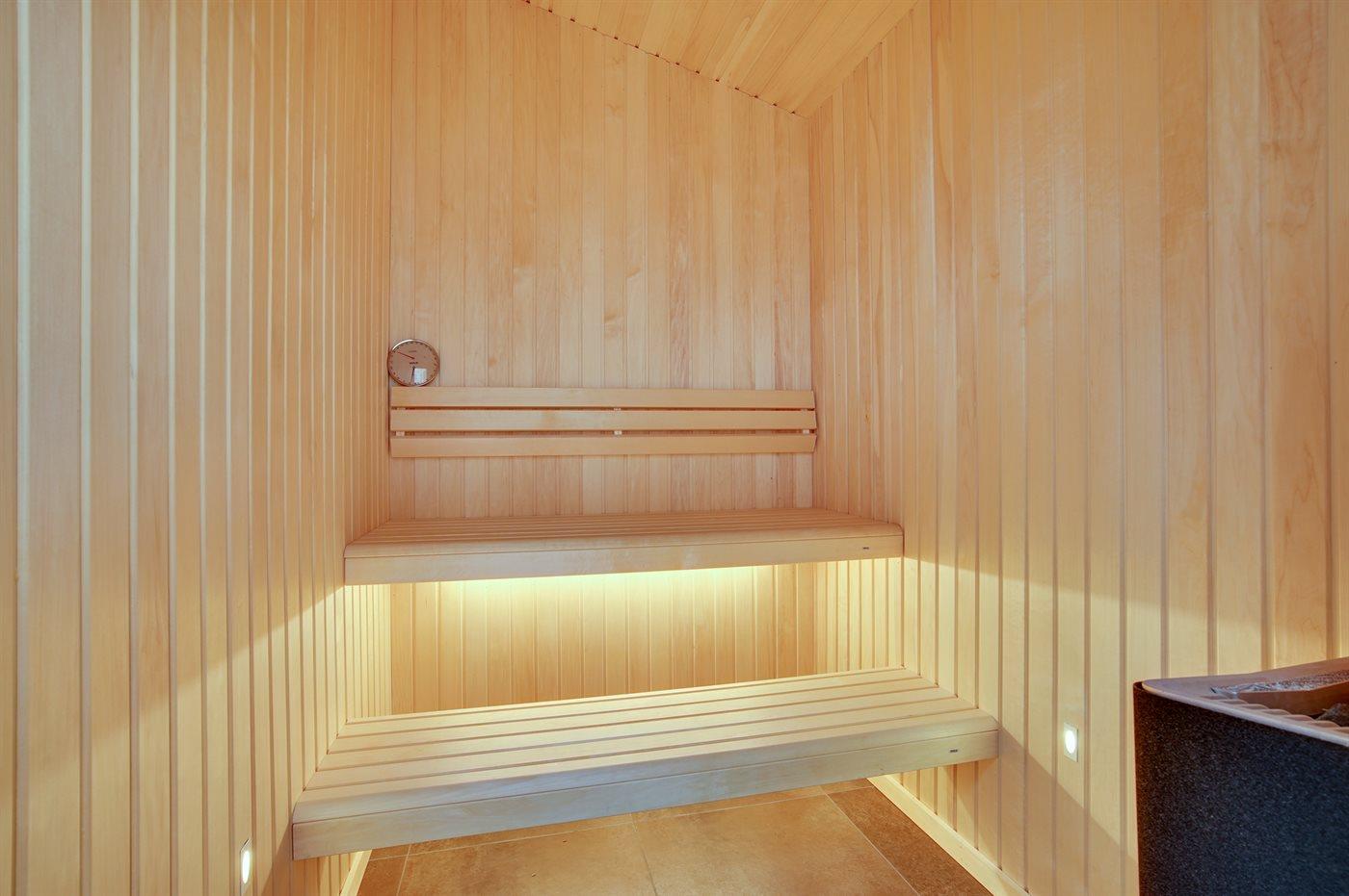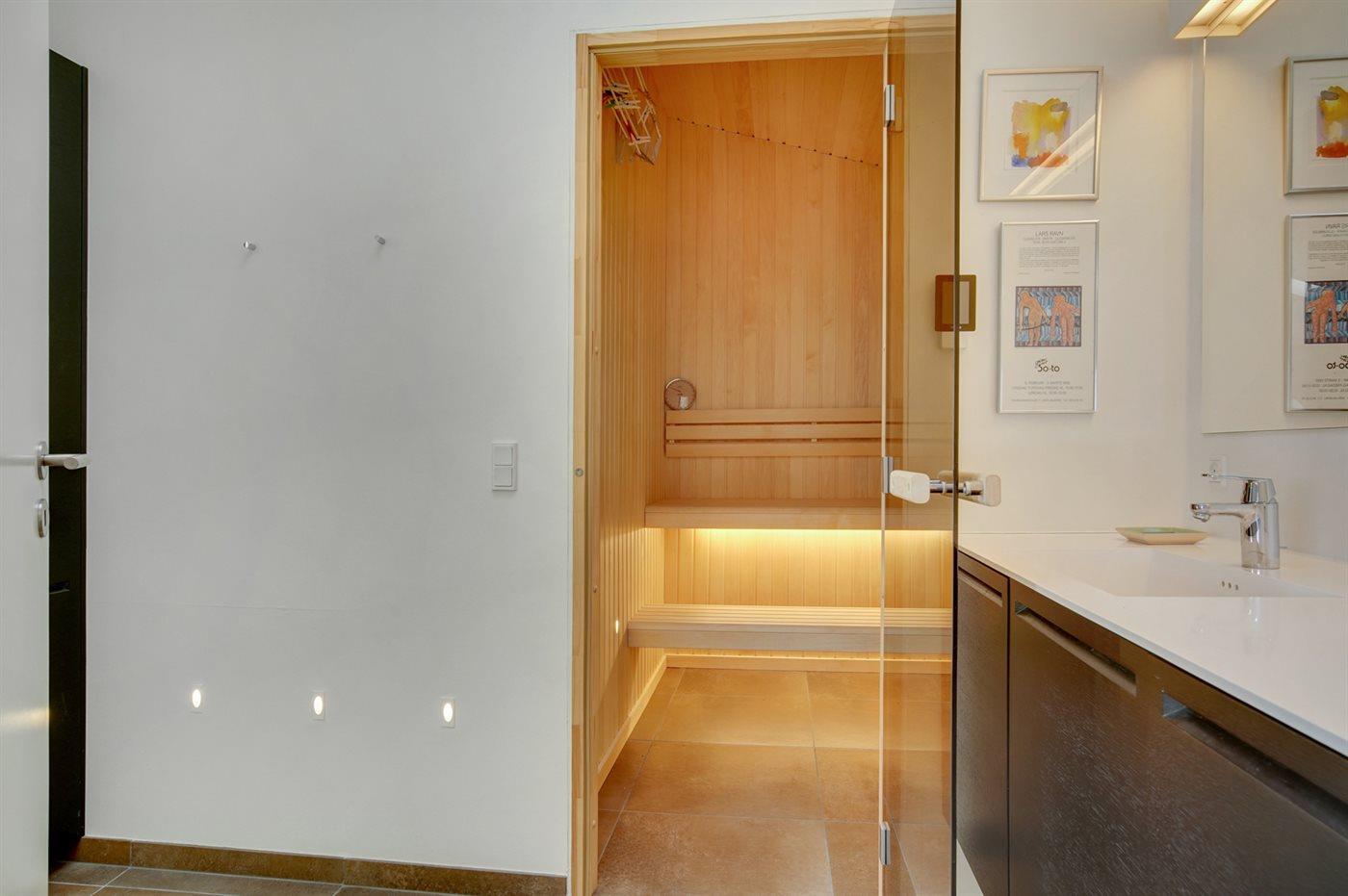 Der er 2 badeværelser med bruseniche og 2 toiletter. Der er gulvvarme på 2 badeværelser. I saunaen er der mulighed for afslapning.