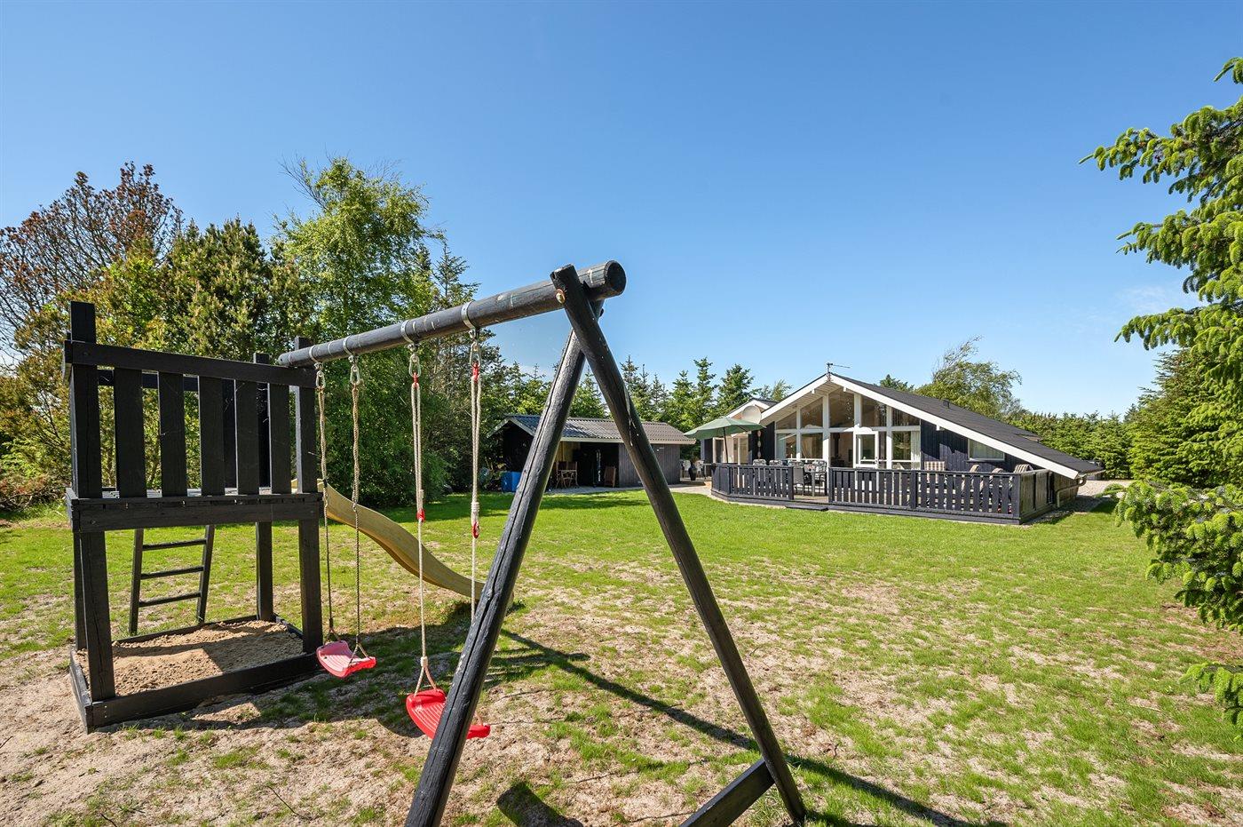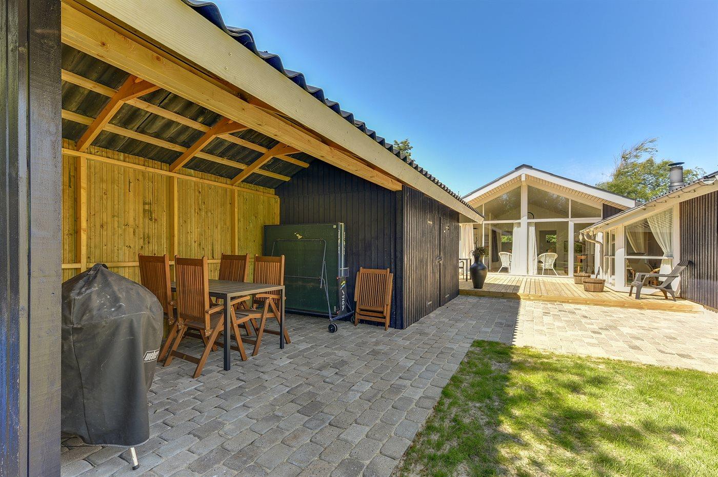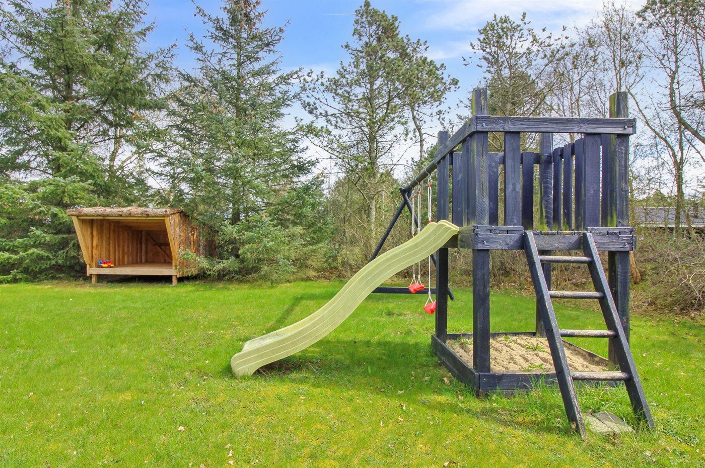 Ferieboligen er beliggende på en 1450 m² stor naturgrund. Der er 1200 m til havet. Nærmeste forretning er beliggende i en afstand af 800 m. Til ferieboligen hører 50 m² terrasseareal. Desuden er der 10 m² overdækket terrasse. Der er redskabsrum. Gynge. Sandkasse. Legetårn. Rutchebane. Shelter. Der er mulighed for at tilberede maden udendørs i udekøkkenet. Parkering ved ferieboligen.