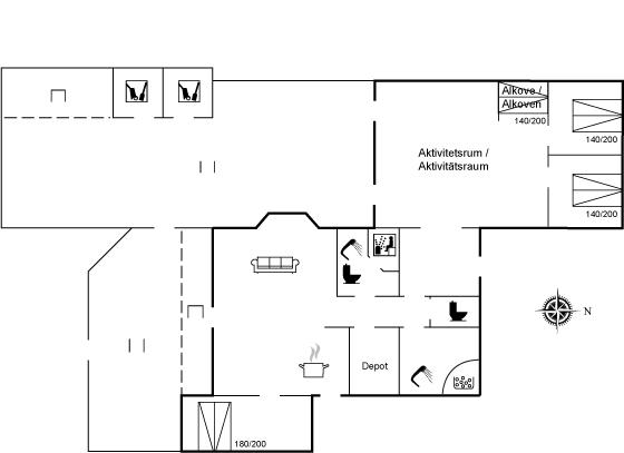 Der er i alt 3 soveværelser. Sovepladserne fordeler sig på: 6 sovepladser i dobbeltsenge. 2 sovepladser i alkove. Derudover er der 1 stk. barneseng.