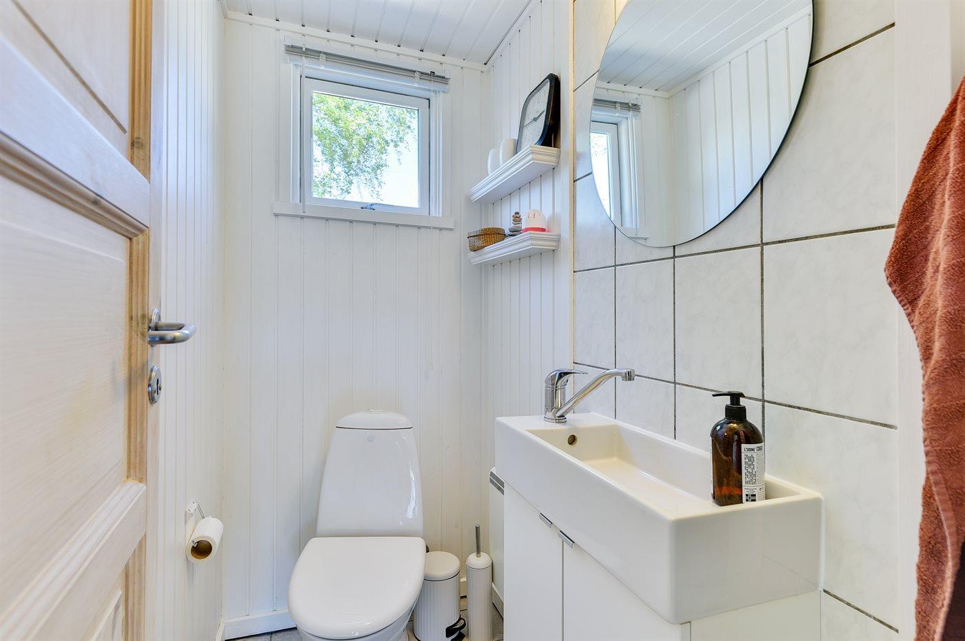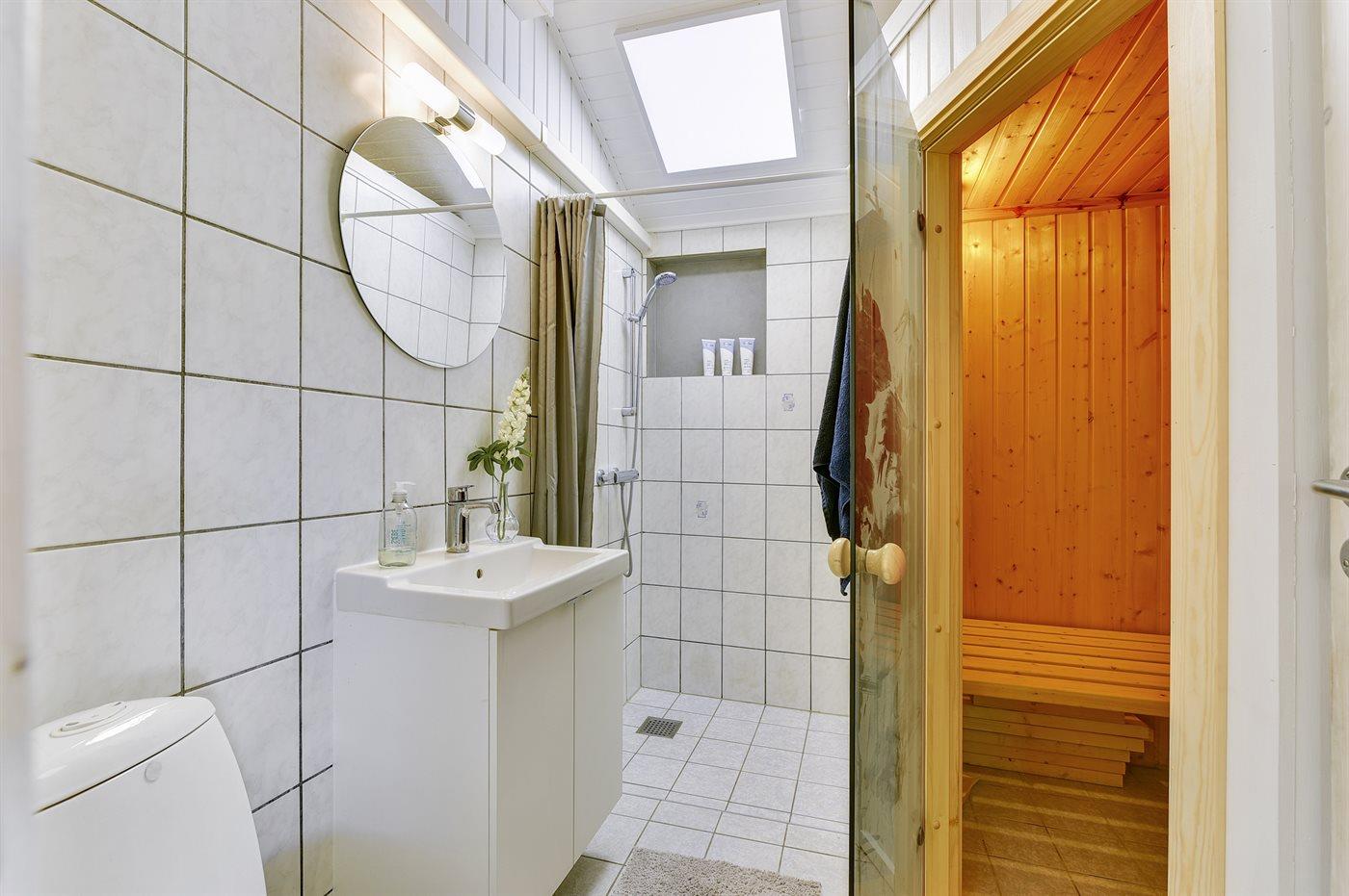 Der er 2 badeværelser med bruseniche og 2 toiletter, heraf 1 gæstetoilet. Der er gulvvarme på 2 badeværelser. Der er gulvvarme på gæstetoilettet. I saunaen er der mulighed for afslapning.