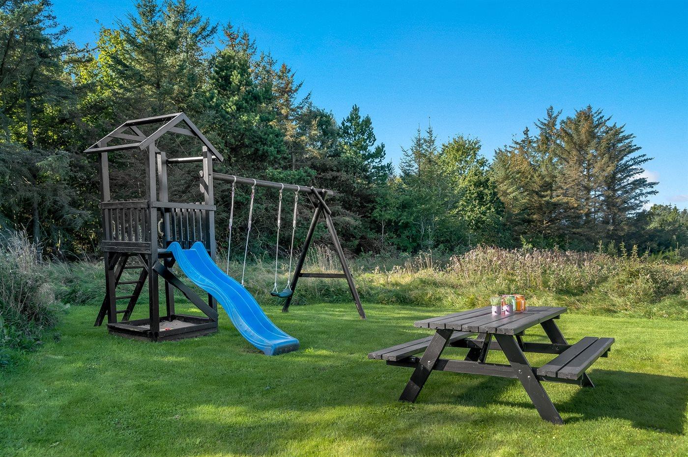 Ferieboligen er beliggende på en 2500 m² stor naturgrund. Der er 1400 m til havet. Nærmeste forretning er beliggende i en afstand af 1800 m. Til ferieboligen hører 90 m² terrasseareal. Desuden er der 10 m² overdækket terrasse. Gynge. Legetårn. Rutchebane. Fodboldmål. Grill til rådighed. Parkering ved ferieboligen.