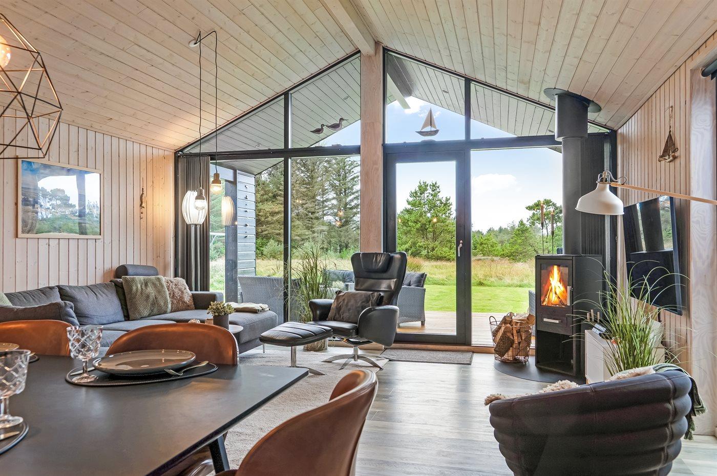 Sommerhuset egner sig til 8 personer samt 1 barn op til 3 år. Ferieboligen er på 120 m² og er bygget i 2017. Det er tilladt at medbringe 1 husdyr. Ferieboligen er udstyret med energibesparende varmepumpe. Ferieboligen har vaskemaskine. Tørretumbler. Frysekapacitet på 90 liter. Der er desuden brændeovn. Til de små er der 1 stk. barnestol.