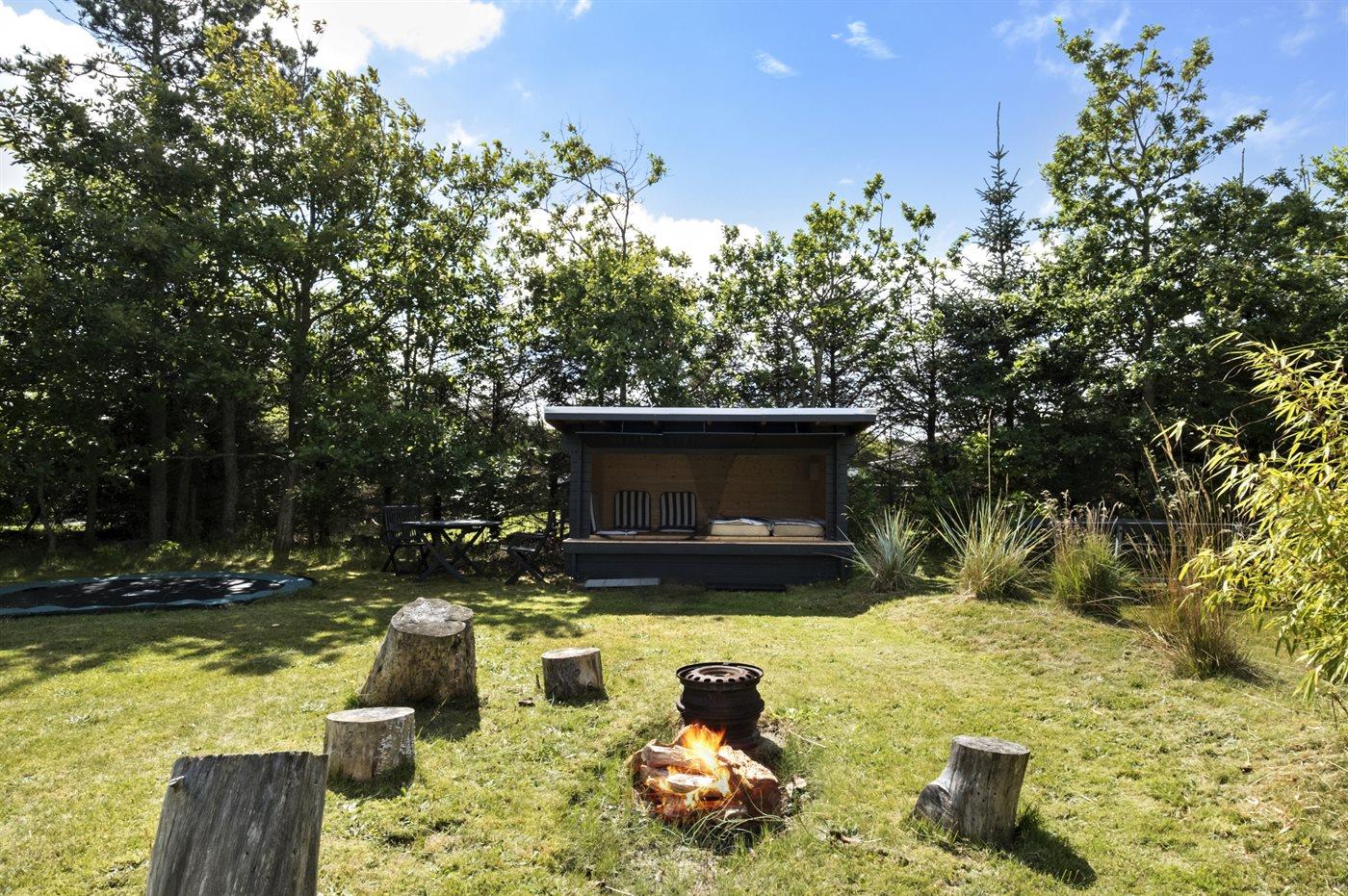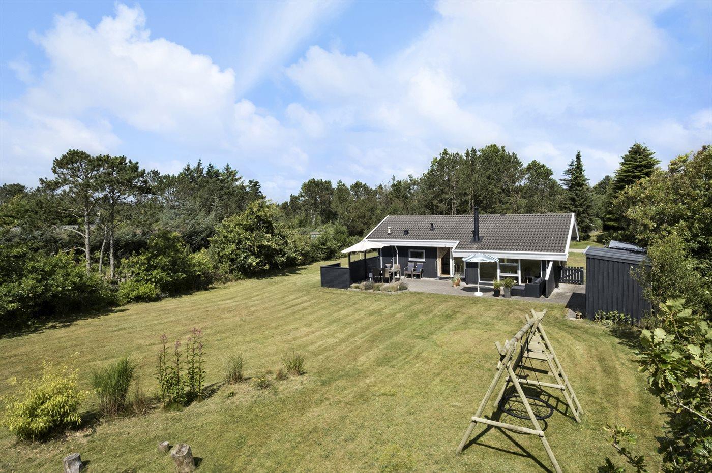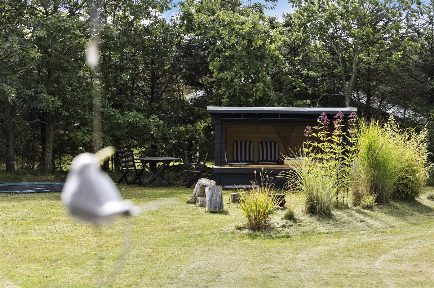Ferieboligen er beliggende på en 1444 m² stor naturgrund. Der er 2200 m til havet. Nærmeste forretning er beliggende i en afstand af 300 m. Der er en golfbane i en afstand af 6000 m. Til ferieboligen hører 30 m² terrasseareal. Gynge. Trampolin. Shelter. Parkering ved ferieboligen.