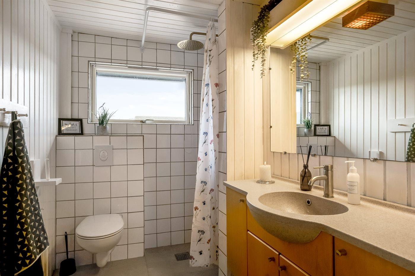 Udenfor finder du en 1550 m² stor naturgrund, kun 500 m fra havet og 2500 m fra de nærmeste indkøbsmuligheder. Nyd de lange sommeraftener på den 60 m² store terrasse, hvoraf 15 m² er overdækket, eller tilbered et lækkert måltid på Weber gasgrillen. Til elbilejere er der installeret et ladestik med 11 kW ladeeffekt, og parkering er tilgængelig lige ved sommerhuset.