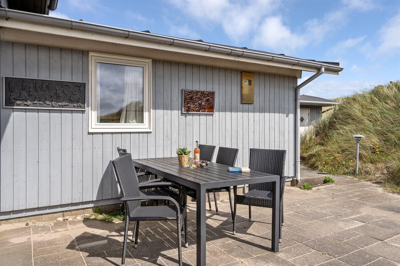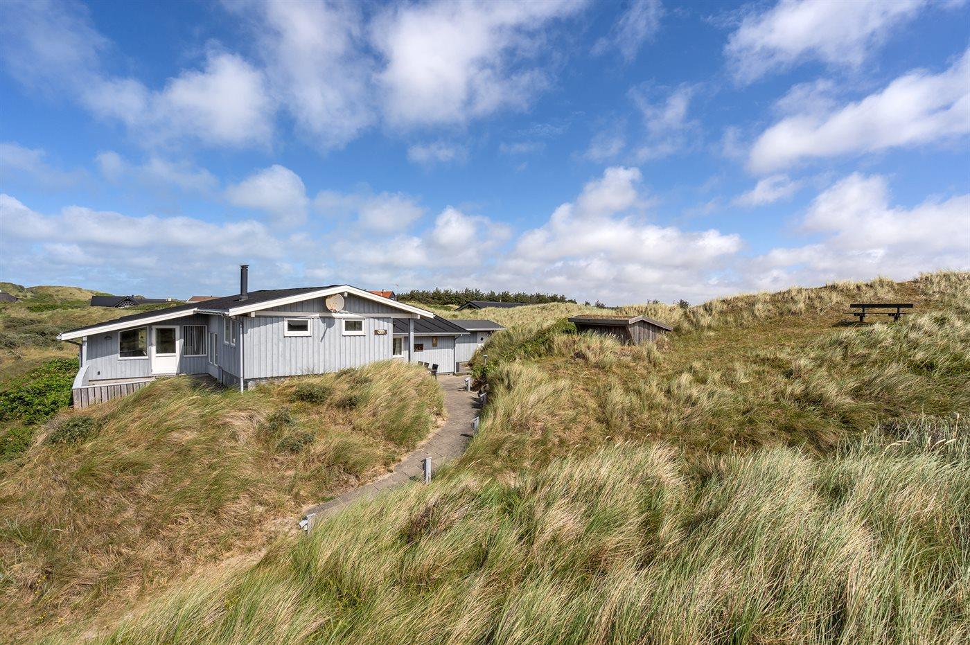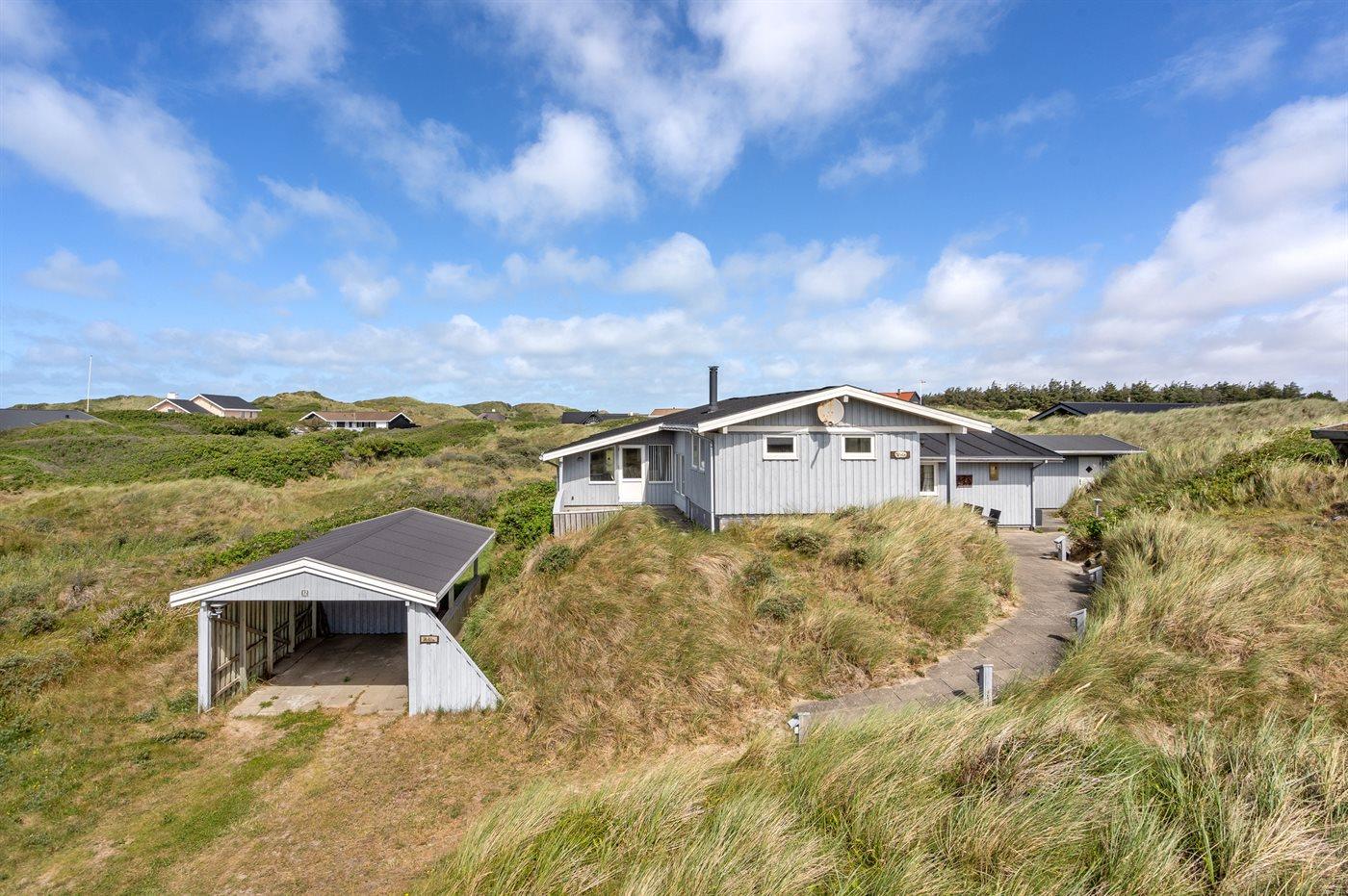 På en meget stor og kuperet grund tæt på Vesterhavet og dejlig badestrand finder man dette skønne sommerhus. Huset er indrettet lyst og indbydende, og fra huset er der kig til havet.