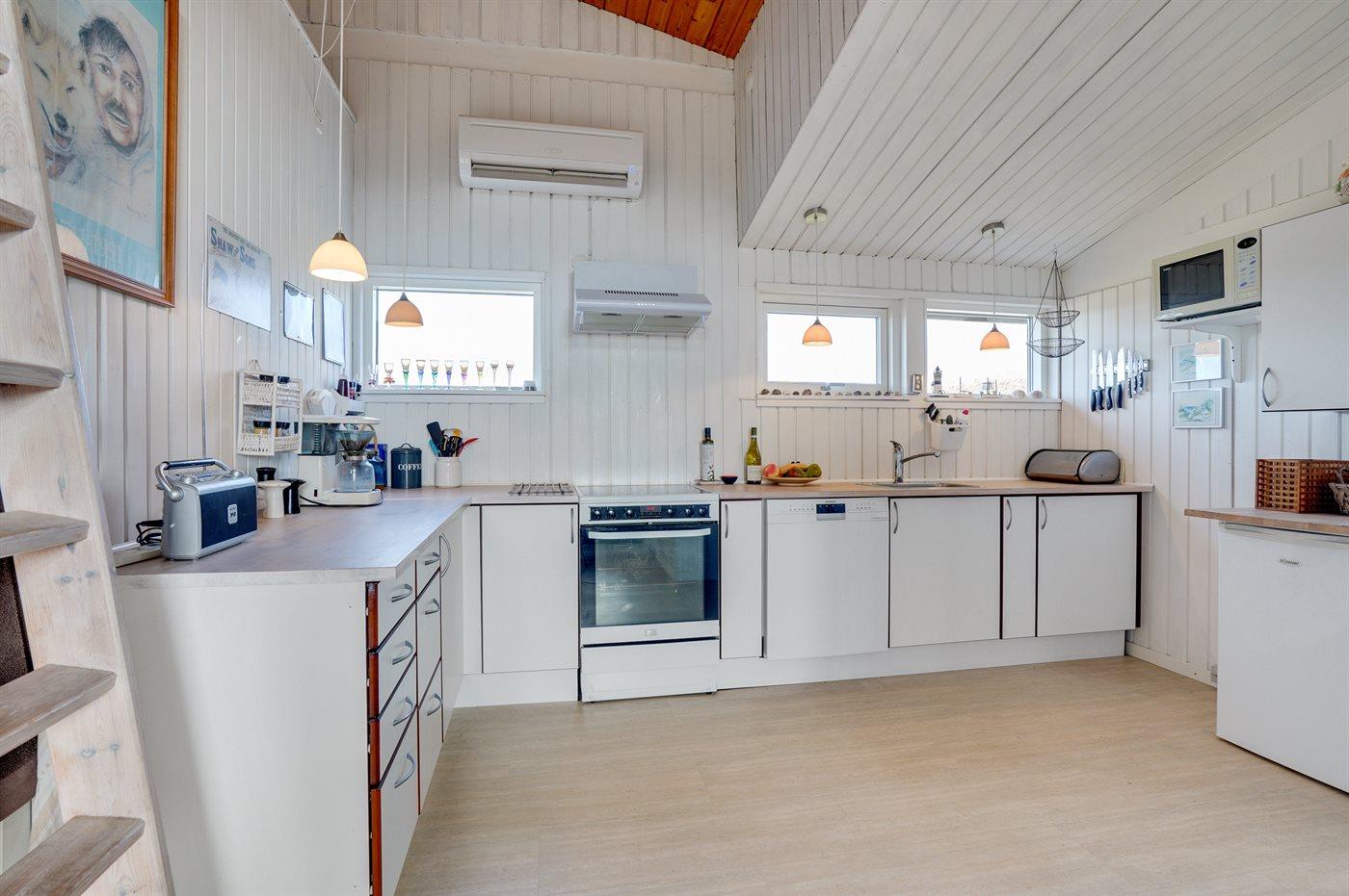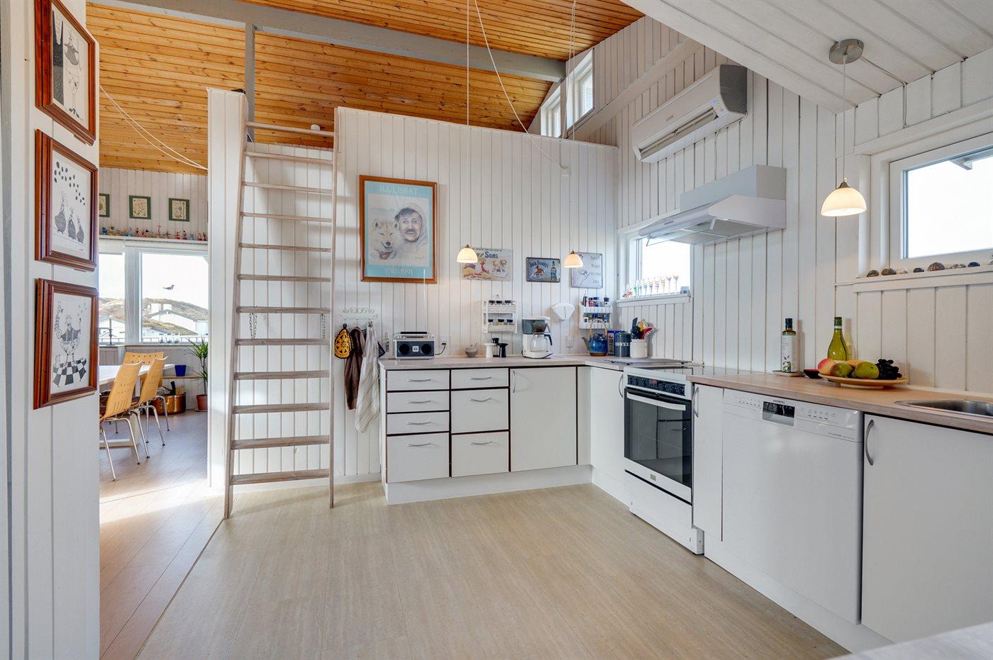 Køkkenet er udstyret med 1 køleskab. Der er 4 keramiske kogeplader, varmluftovn, mikrobølgeovn samt opvaskemaskine.