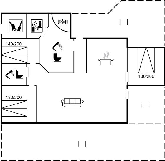 Der er i alt 3 soveværelser. Sovepladserne fordeler sig på: 6 sovepladser i dobbeltsenge.