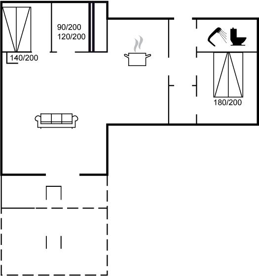 Der er i alt 3 soveværelser. Sovepladserne fordeler sig på: 4 sovepladser i dobbeltsenge. 2 sovepladser i køjeseng. Derudover er der 1 stk. barneseng.