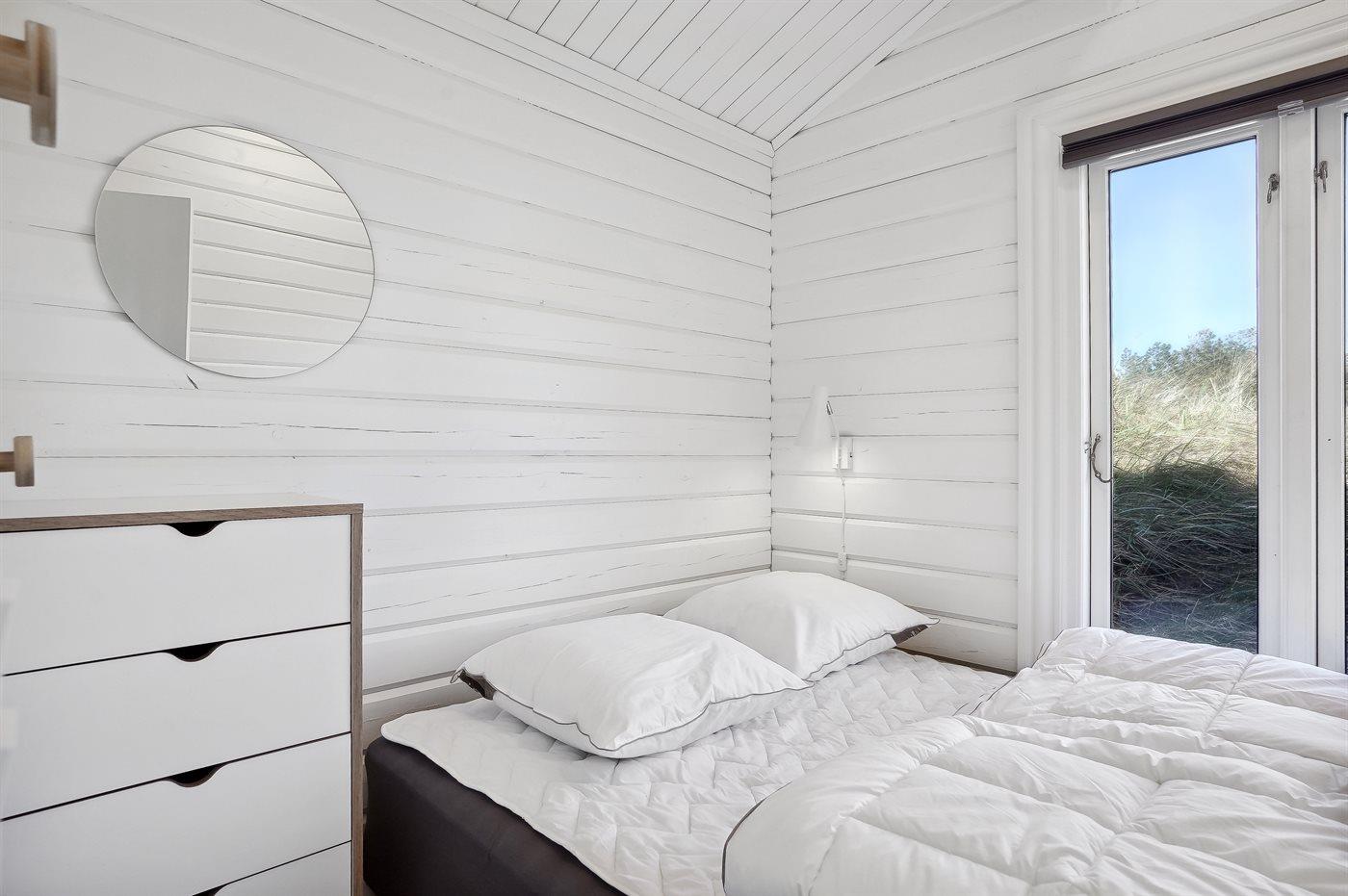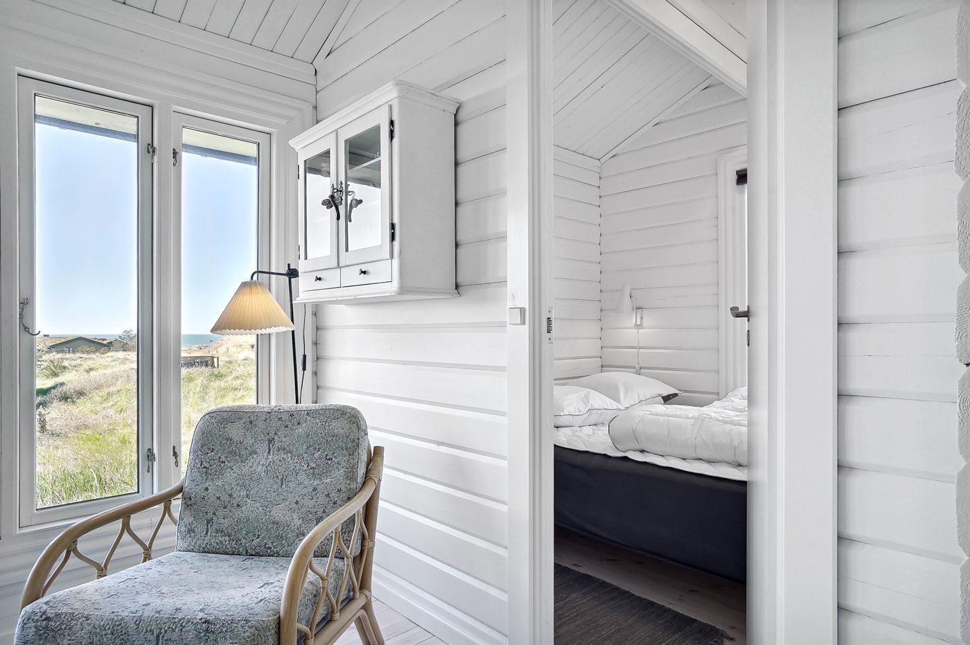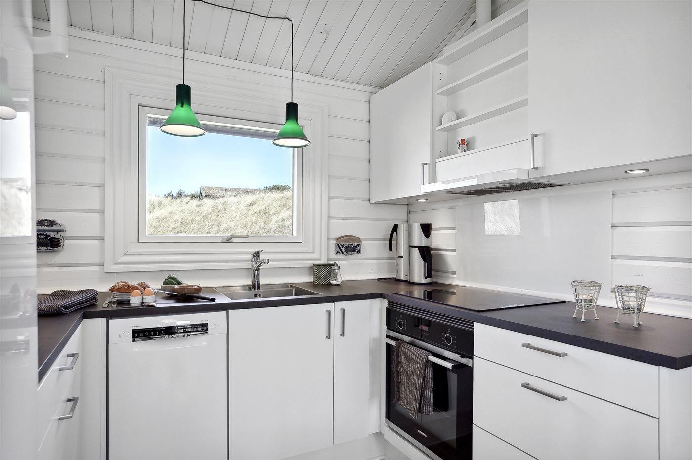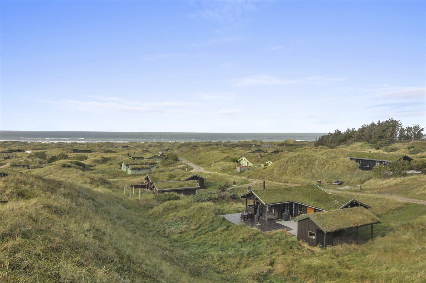 Sommerhuset er lige sådan, som et klassisk sommerhus skal være med træbeklædt facade, græs på taget og en idyllisk placering midt i det uspolerede klitlandskab. Den enkle og rustikke stil går igen inde i huset, hvor der er træ på gulve, vægge og lofter og et charmerende interiør, som sætter fine rammer om ferieturens hyggelige samvær. Køkkenet ligger i åben forbindelse med stuen, som har lysindfald fra tre verdenshjørner – og ikke mindst en flot udsigt til Vesterhavet fra de store vinduespartier.