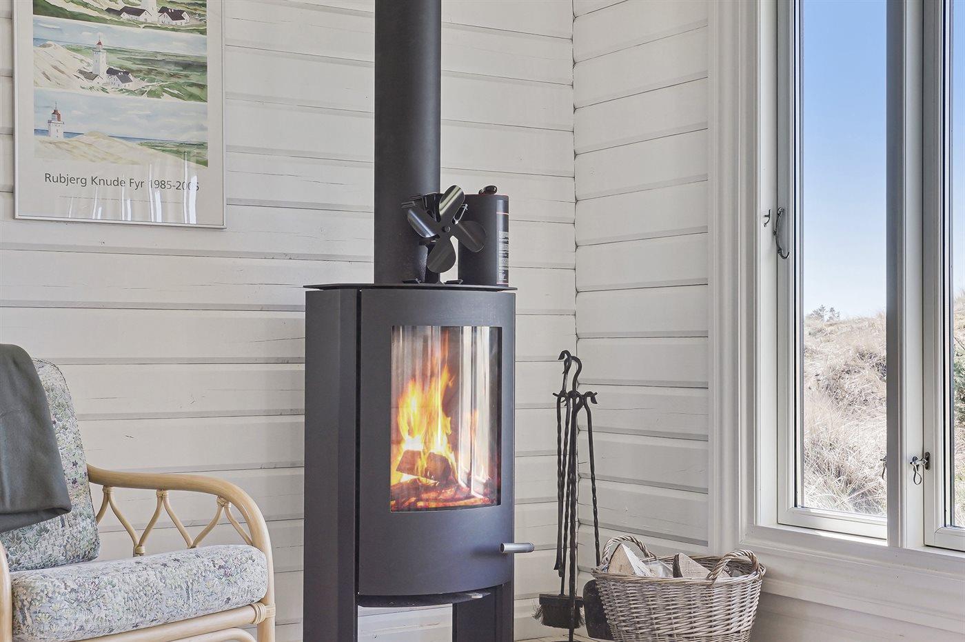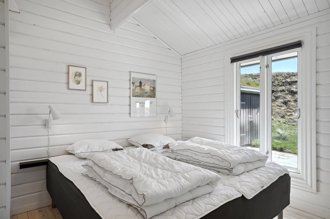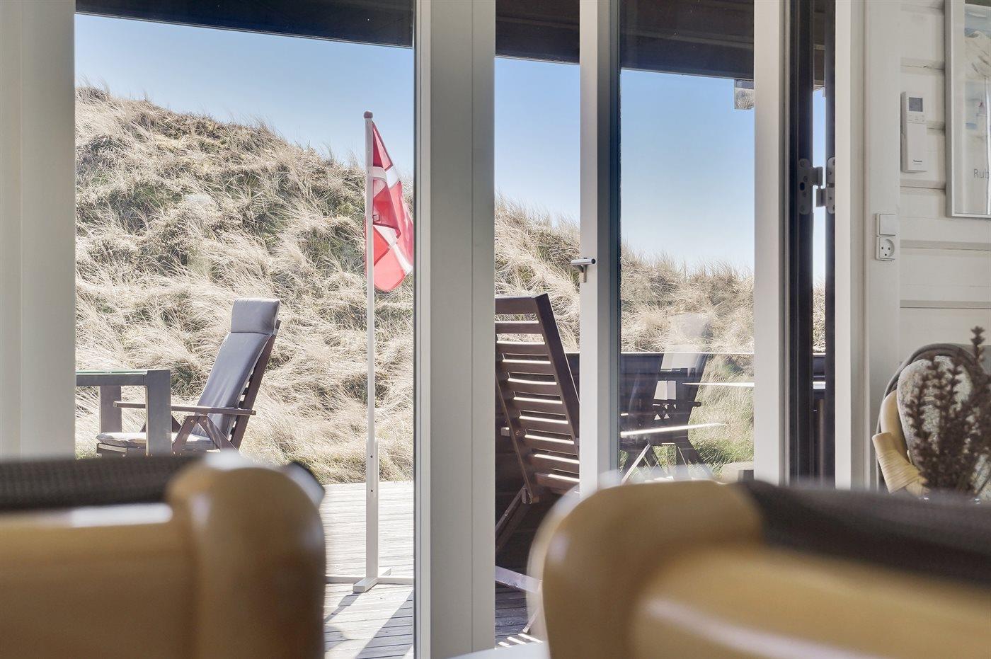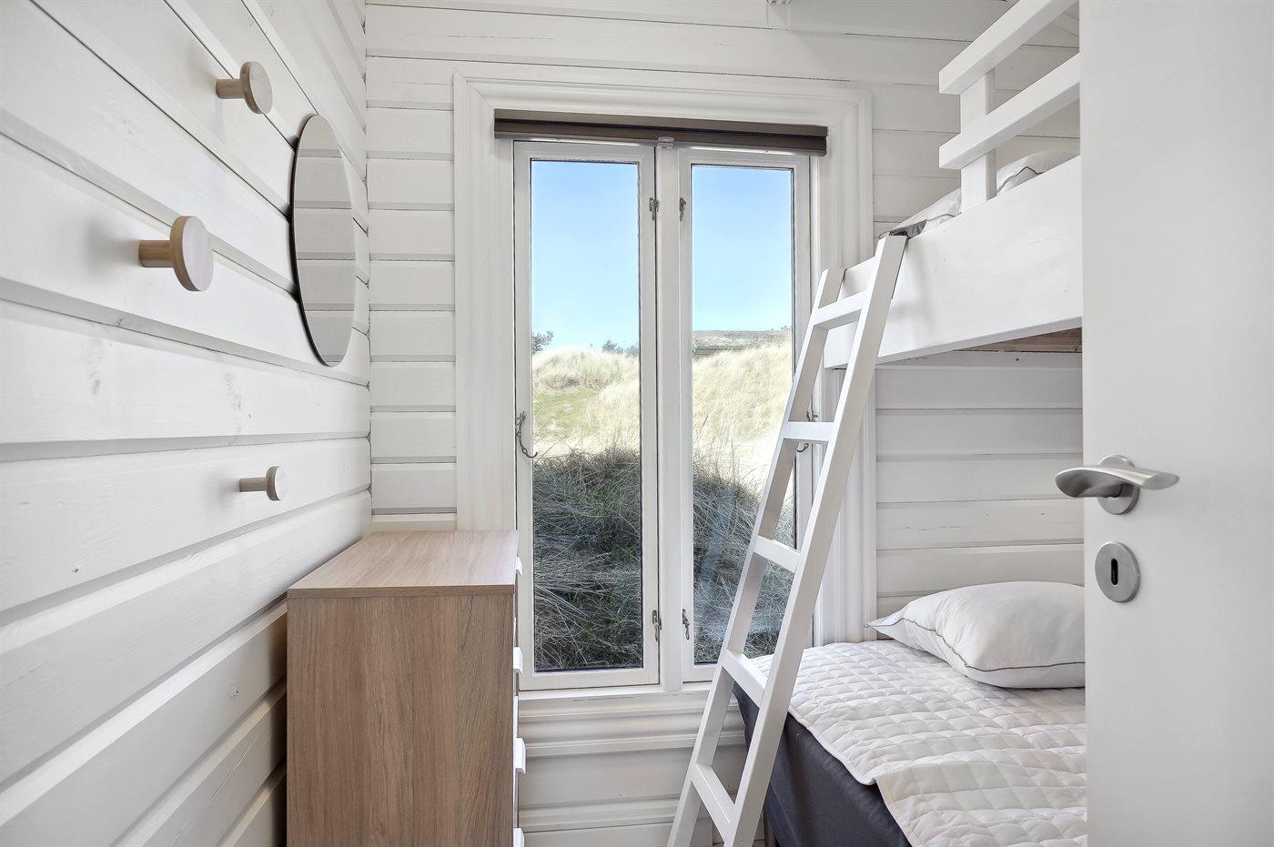 Sommerhuset er lige sådan, som et klassisk sommerhus skal være med træbeklædt facade, græs på taget og en idyllisk placering midt i det uspolerede klitlandskab. Den enkle og rustikke stil går igen inde i huset, hvor der er træ på gulve, vægge og lofter og et charmerende interiør, som sætter fine rammer om ferieturens hyggelige samvær. Køkkenet ligger i åben forbindelse med stuen, som har lysindfald fra tre verdenshjørner – og ikke mindst en flot udsigt til Vesterhavet fra de store vinduespartier.