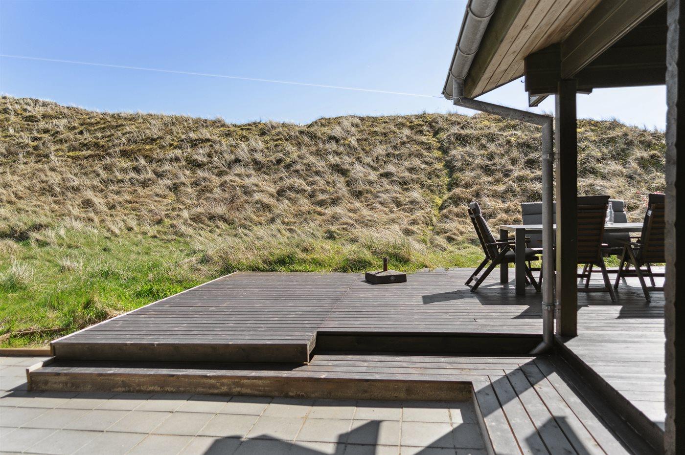 Der er gode terrasser mod syd, hvor I kan dække op til en frokost i det grønne eller bare nyde solskinnet og den friske havluft. Da huset ligger lidt højt, har I et fint kig over omgivelserne og over Vesterhavet.