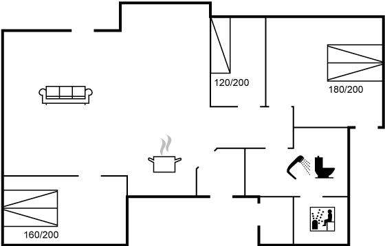 Der er i alt 3 soveværelser. Sovepladserne fordeler sig på: 4 sovepladser i dobbeltsenge. 1 soveplads i enkeltseng.