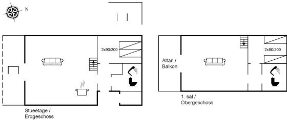 Der er i alt 2 soveværelser. Sovepladserne fordeler sig på: 2 sovepladser i dobbeltseng. 2 sovepladser i enkeltsenge.