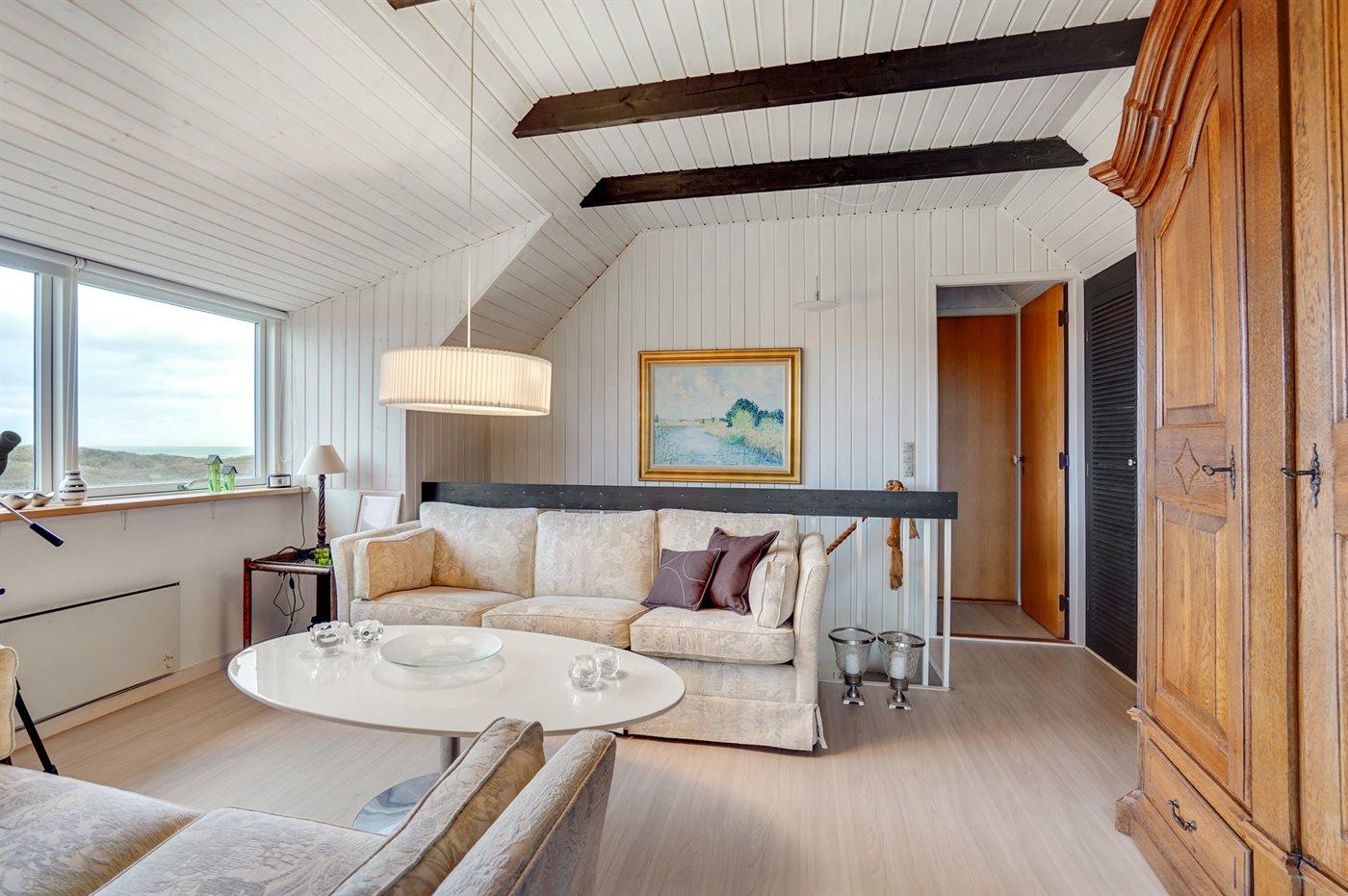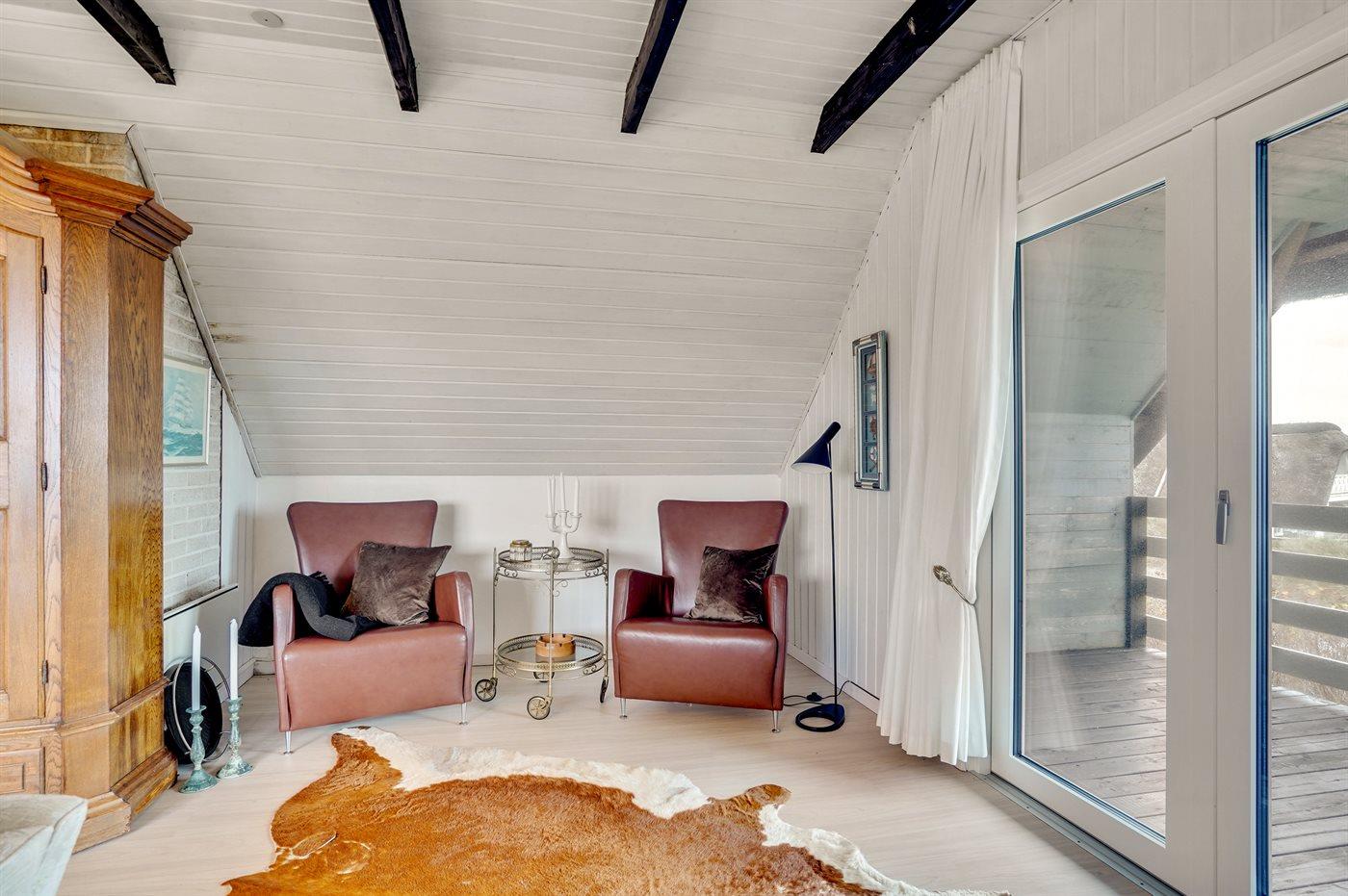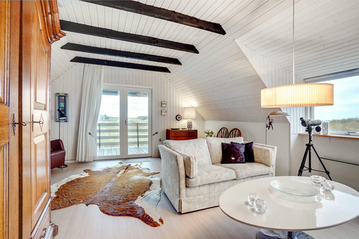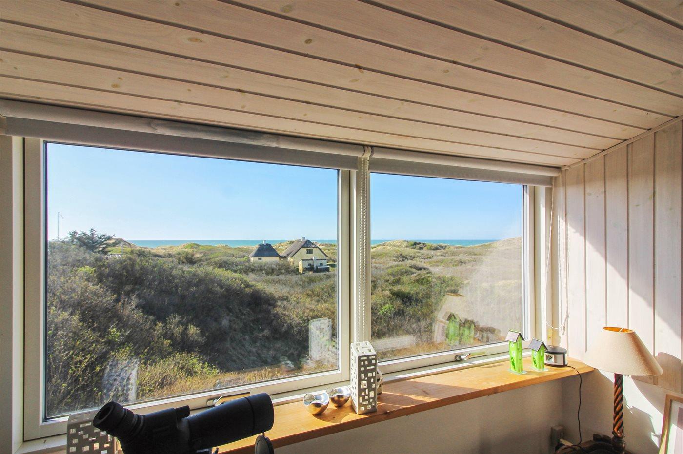 Fra den store stue på nederste etage er der en fantastisk udsigt til klitterne og Vesterhavet og fra 1. salen er der en fantastisk panoramaudsigt over Vesterhavet.