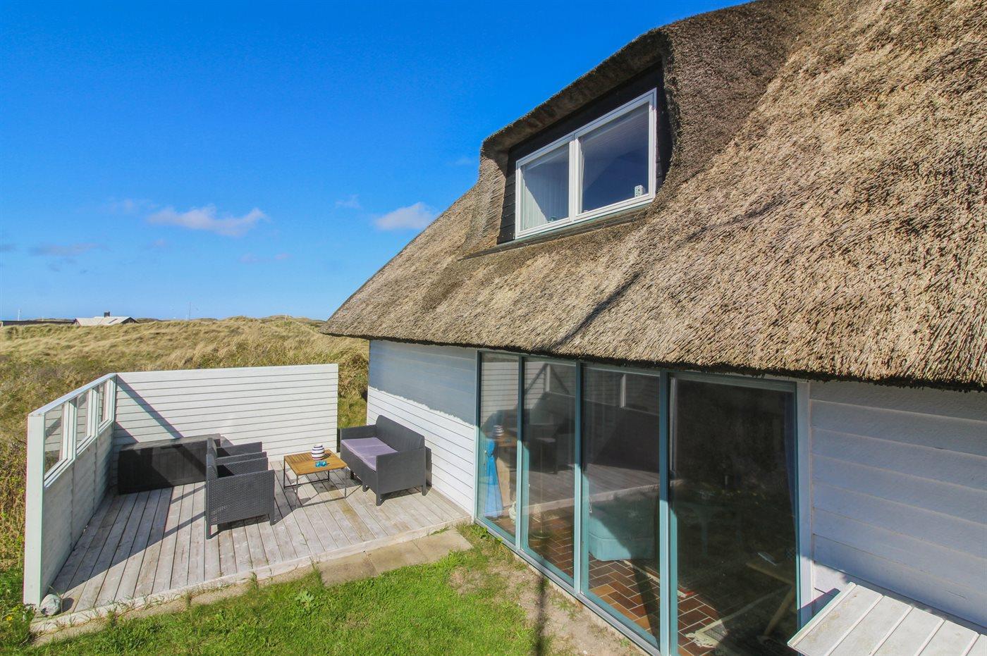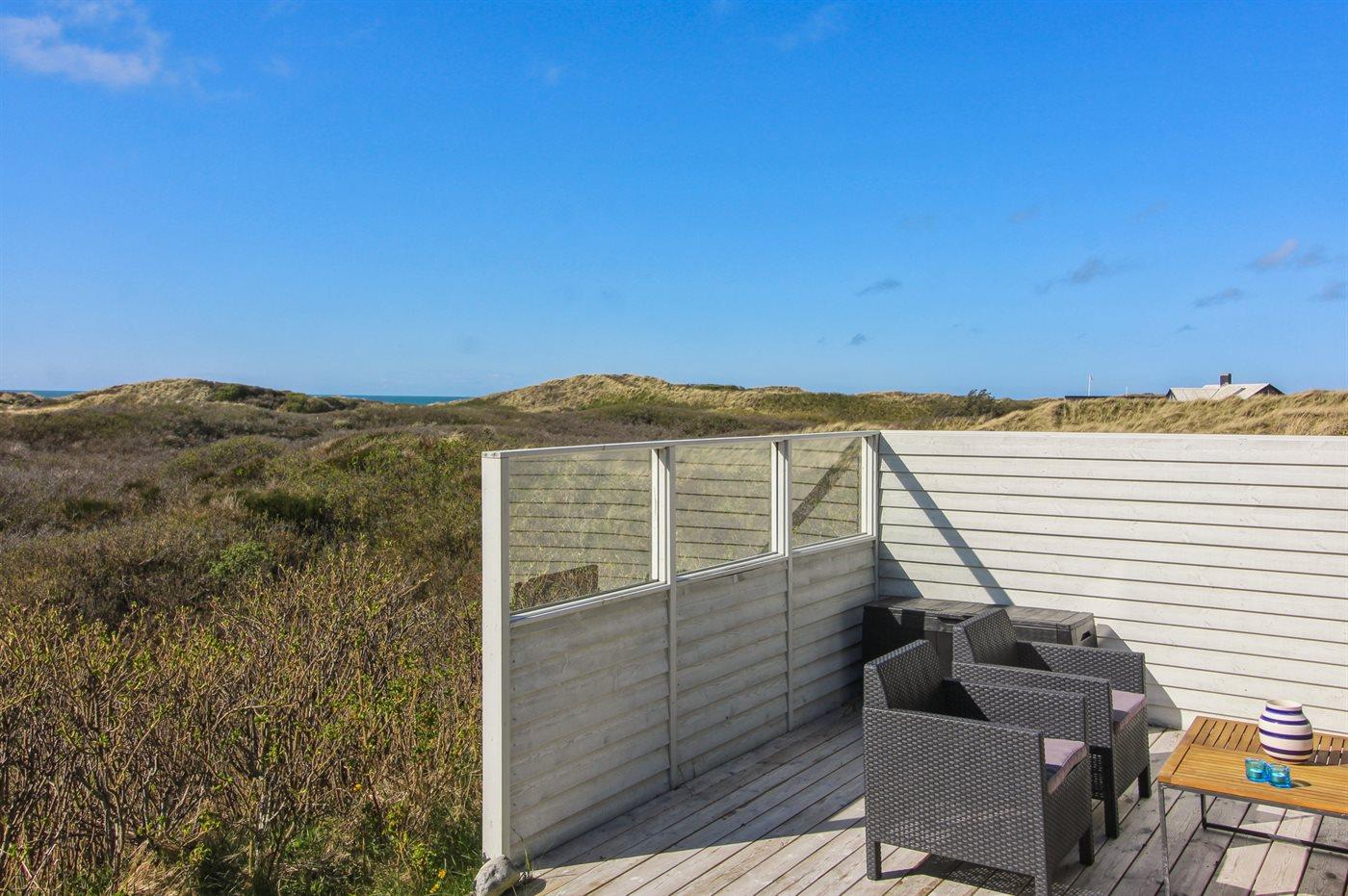 Sommerhuset ligger på en stor og charmerende naturgrund, afgrænset af de kuperede klitter og med masser af privatliv, hvis man gerne vil solbade ugeneret. Til huset hører både en dejlig fliseterrasse i stueplan samt en balkon på 1. sal, hvorfra der er en dejlig udsigt til havet og klitterne.
