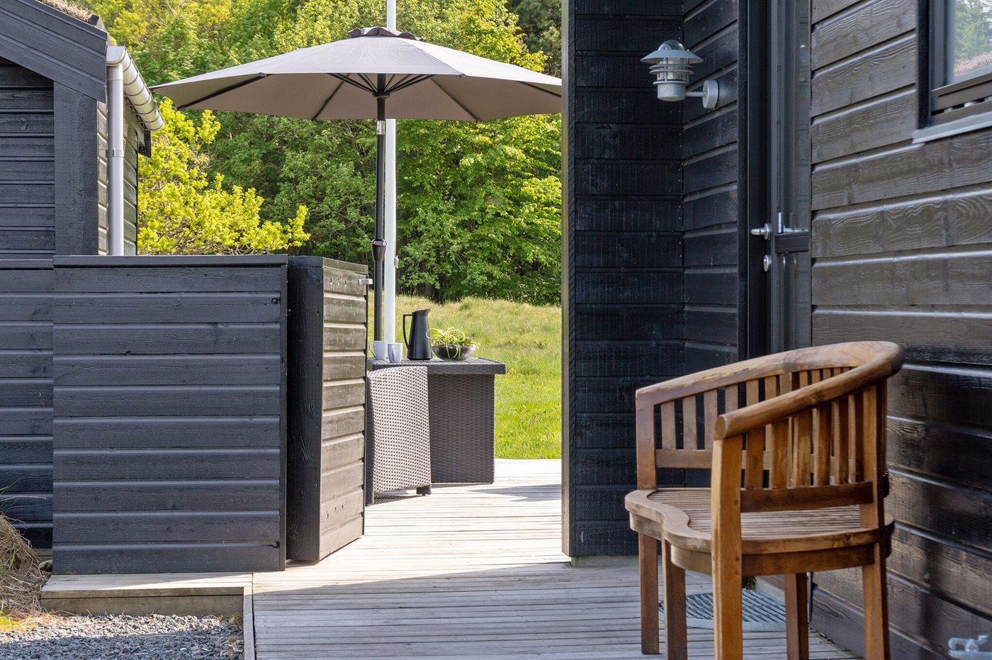 Til huset hører et stort og til dels overdækket terrasseareal, hvor der er mulighed for at slappe af i det dejlige vildmarkskar, som er til rådighed fra påske til og med uge 42.