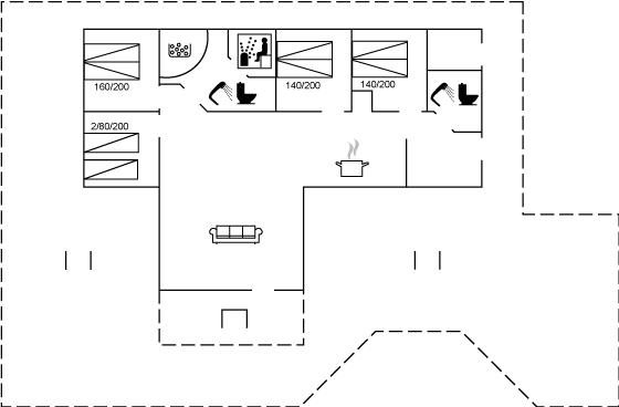 Der er i alt 4 soveværelser. Sovepladserne fordeler sig på: 6 sovepladser i dobbeltsenge. 2 sovepladser i enkeltsenge. Derudover er der 1 stk. barneseng.