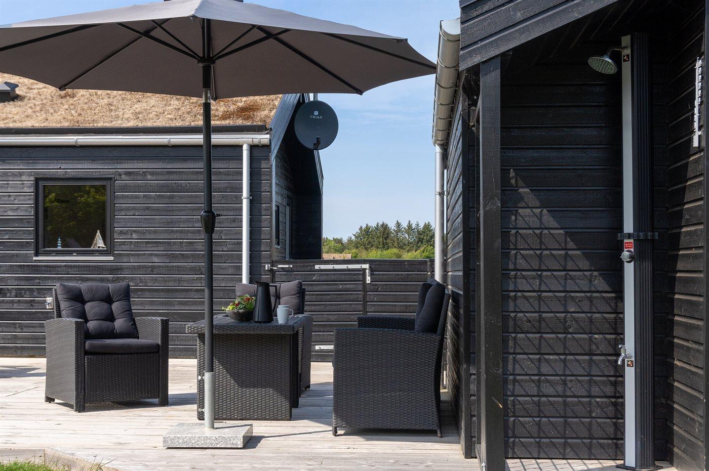 Moderne sommerhus i Saltum med spa, sauna og stor terrasse tæt på strand og natur.