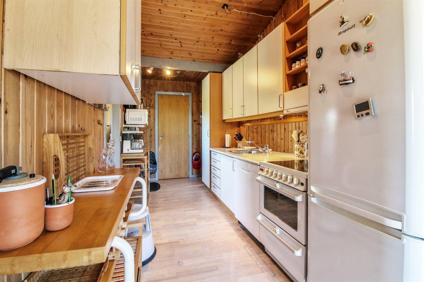 Køkkenet er udstyret med 2 køleskabe. Der er 4 induktionskogeplader, varmluftovn, mikrobølgeovn samt opvaskemaskine.