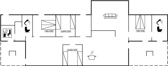 Der er i alt 4 soveværelser. Sovepladserne fordeler sig på: 4 sovepladser i dobbeltsenge. 4 sovepladser i enkeltsenge.