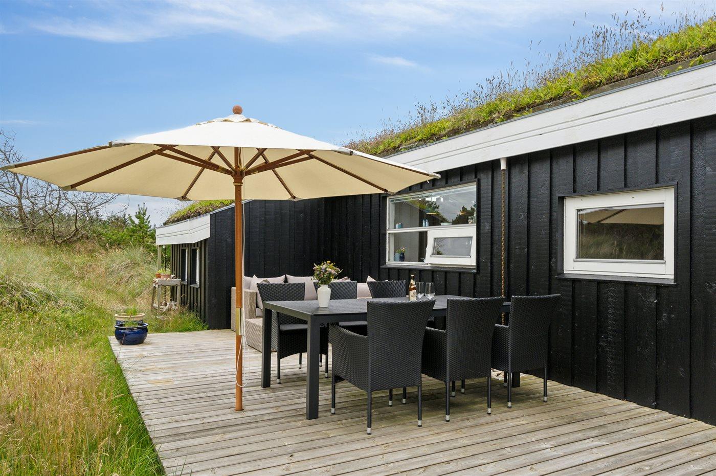 Ferieboligen er beliggende på en 2500 m² stor klitgrund. Der er 500 m til havet. Nærmeste forretning er beliggende i en afstand af 4000 m. Der er en golfbane i en afstand af 8000 m. Til ferieboligen hører åbent terrasseareal. Udendørs bruser. Grill til rådighed. Parkering ved ferieboligen.