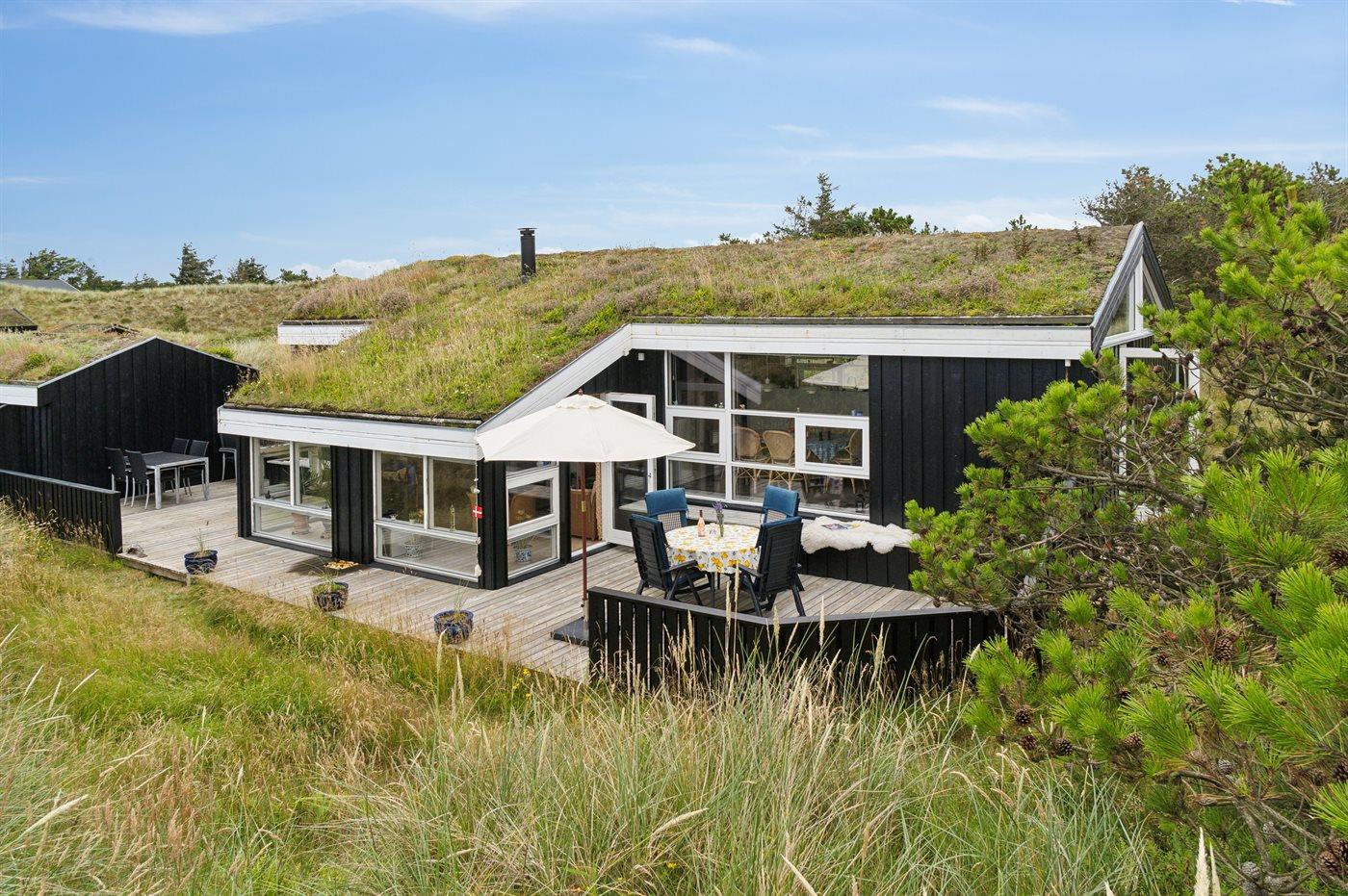 Skønt sommerhus beliggende på en stor, smuk kuperet naturgrund i det attraktive kvarter omkring Faarup Klit, Saltum. Fra grunden er der udsigt til havet.