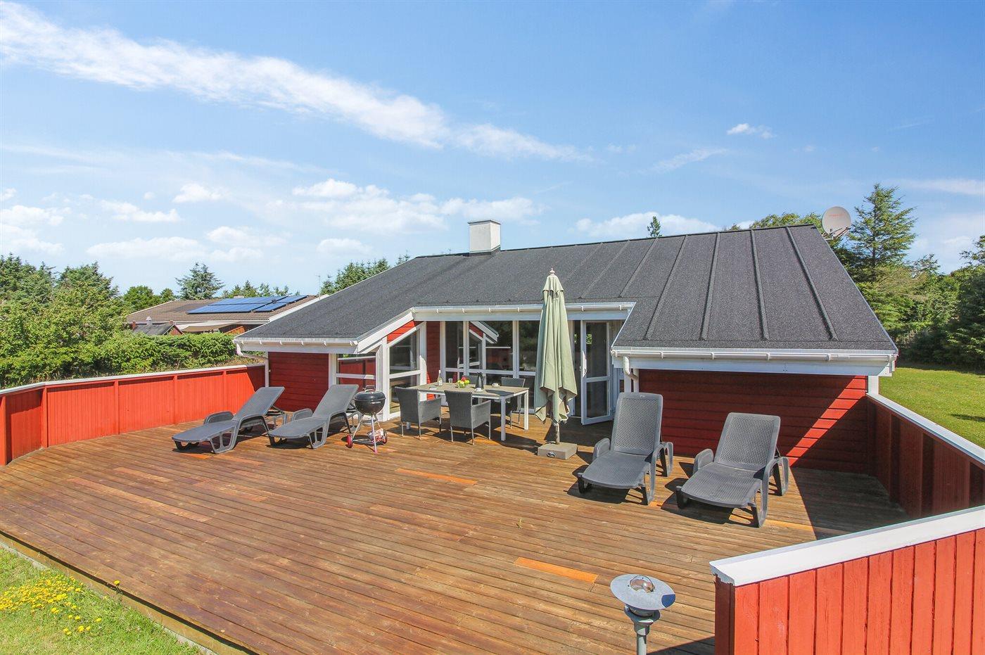 Her kan I virkelig nyde ferien – sæt jer ud på den store træterrasse og nyd den friske luft og solen, men børnene leger på den store grund.