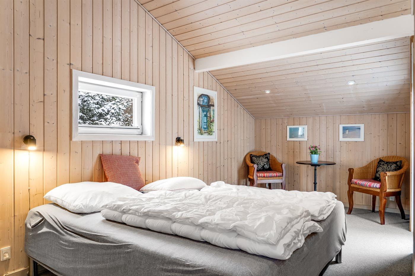 Der er i alt 4 soveværelser. Sovepladserne fordeler sig på: 4 sovepladser i dobbeltsenge. 2 sovepladser i enkeltsenge. Derudover er der 1 stk. barneseng.