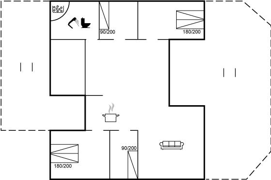 Sommerhuset egner sig til 6 personer samt 1 barn op til 3 år. Ferieboligen er på 120 m² og er bygget i 2000. Det er ikke tilladt at medbringe husdyr. Ferieboligen er udstyret med 1 energivenlig luft til luft varmepumpe. Ferieboligen har vaskemaskine. Tørretumbler. Frysekapacitet på 65 liter. Der er desuden brændeovn. Til de små er der 1 stk. barnestol.