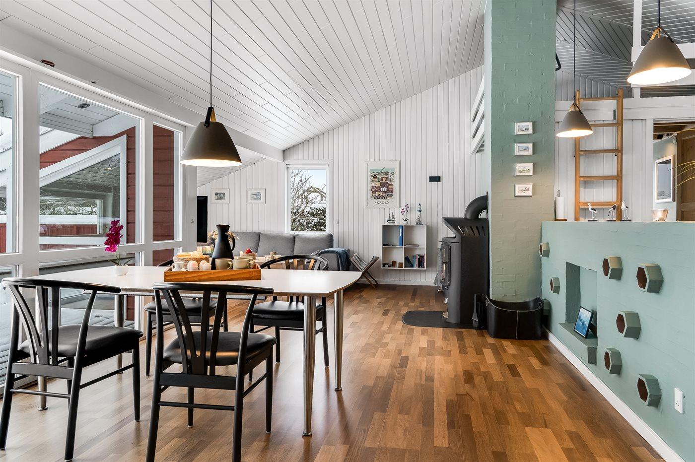 Huset er meget velholdt og indretningen er lys med en hyggelige atmosfære og moderne møbler. Her er der plads til hyggeligt samvær med familie og venner.