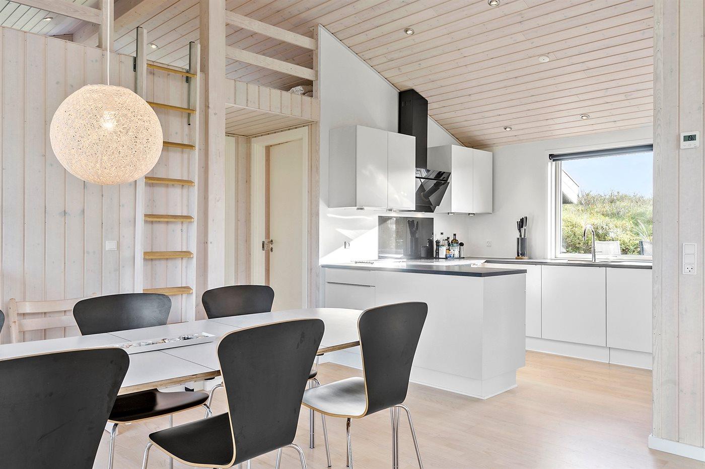 Køkkenet er udstyret med 1 køleskab. Der er 4 induktionskogeplader, varmluftovn, mikrobølgeovn samt opvaskemaskine.