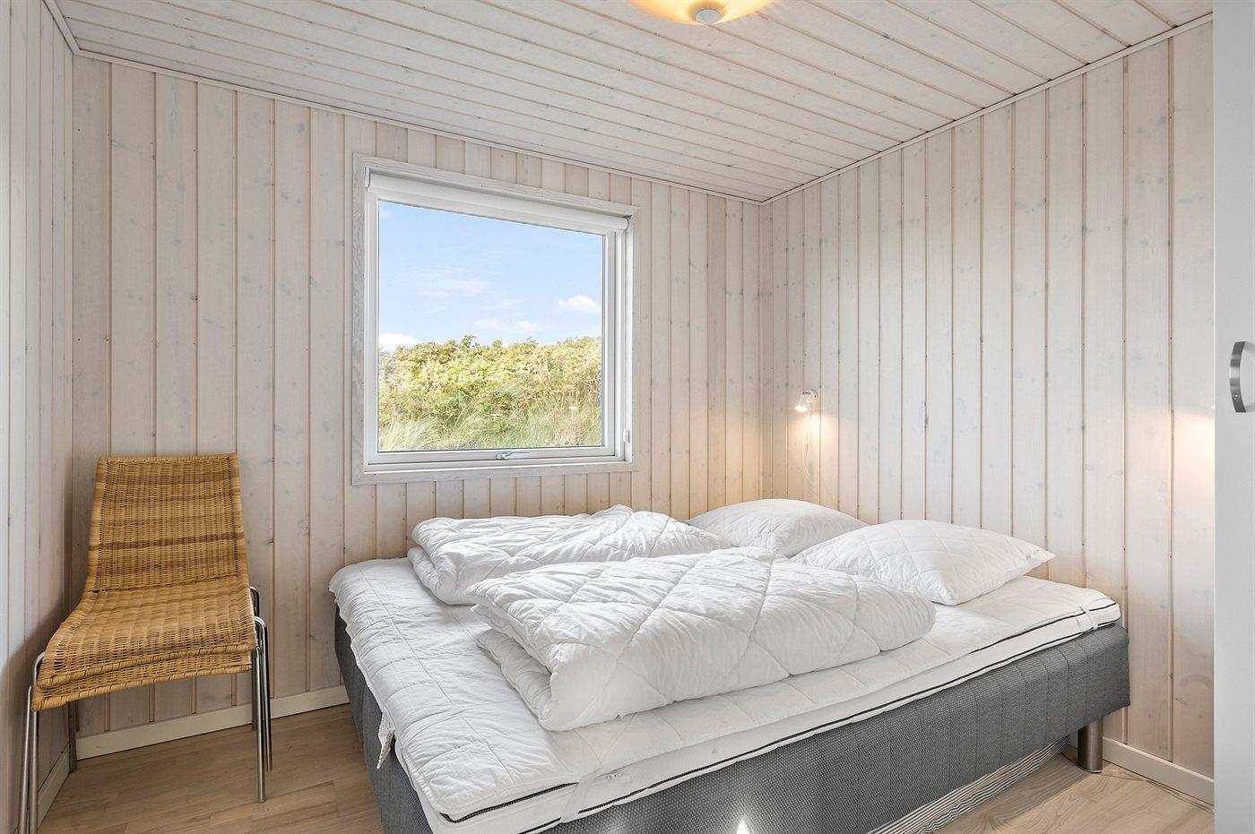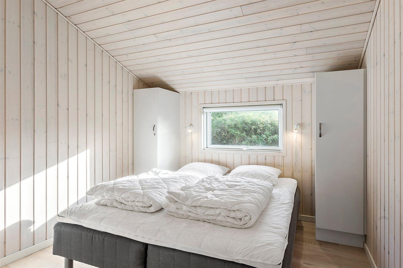 Der er i alt 4 soveværelser. Sovepladserne fordeler sig på: 6 sovepladser i dobbeltsenge. 1 soveplads i enkeltseng. Derudover er der 2 stk. barnesenge.