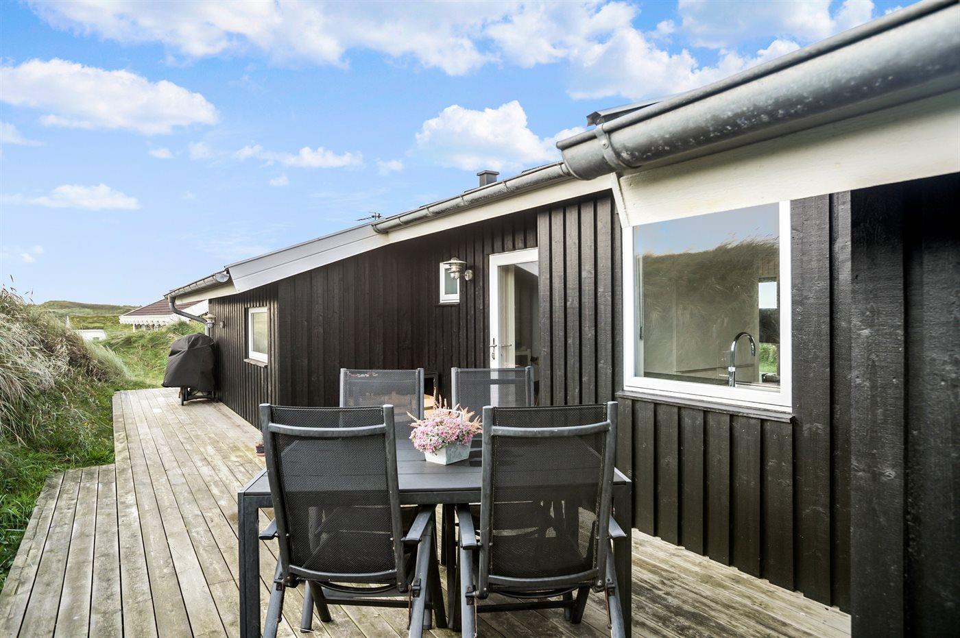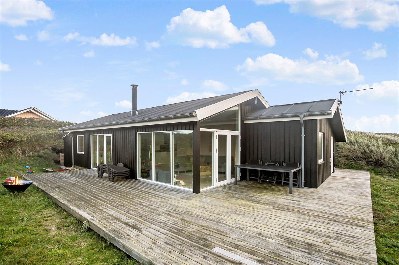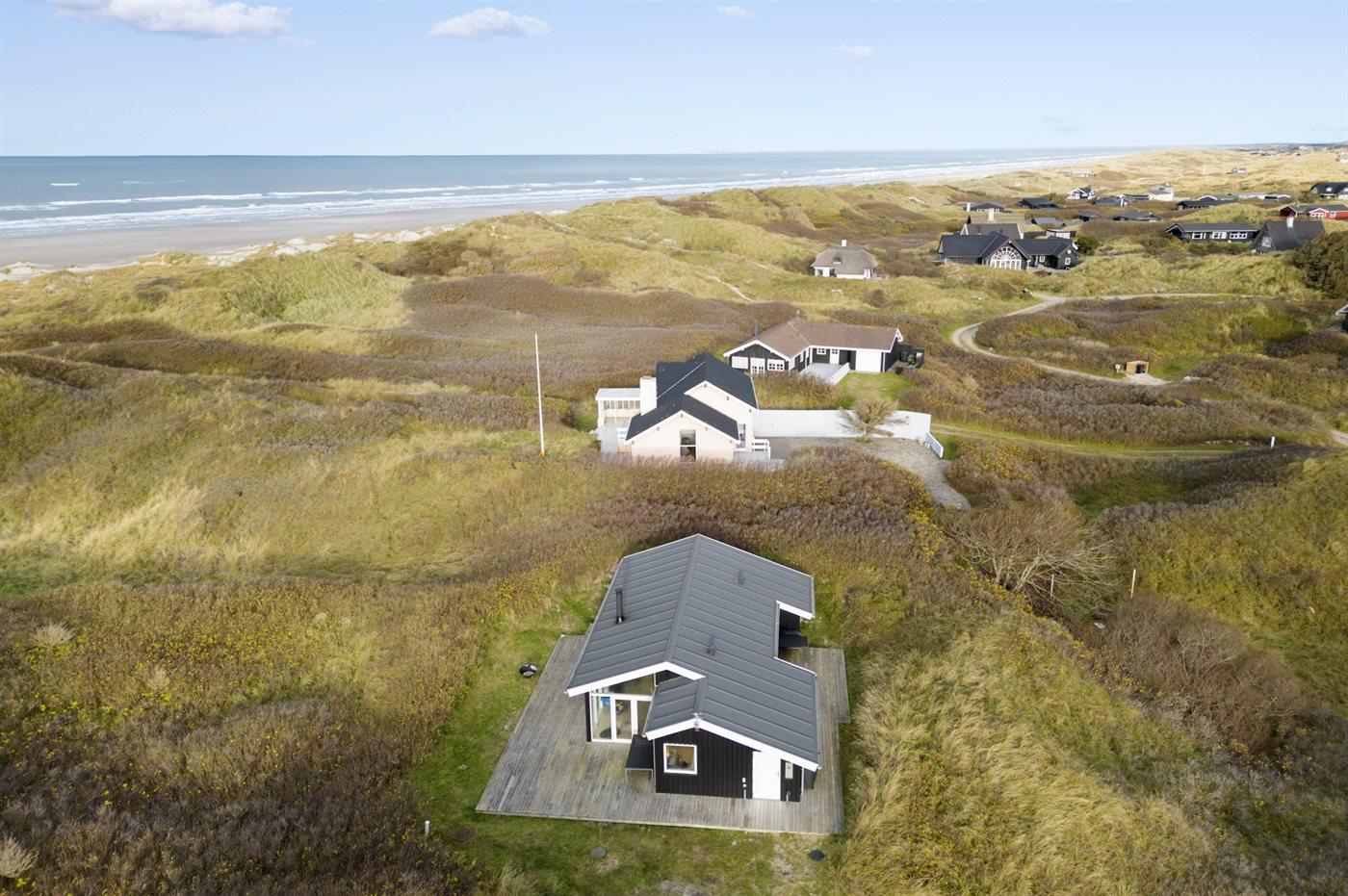 Moderne sommerhus i første klitrække ved Vesterhavet med fantastisk terrasse og smuk udsigt.