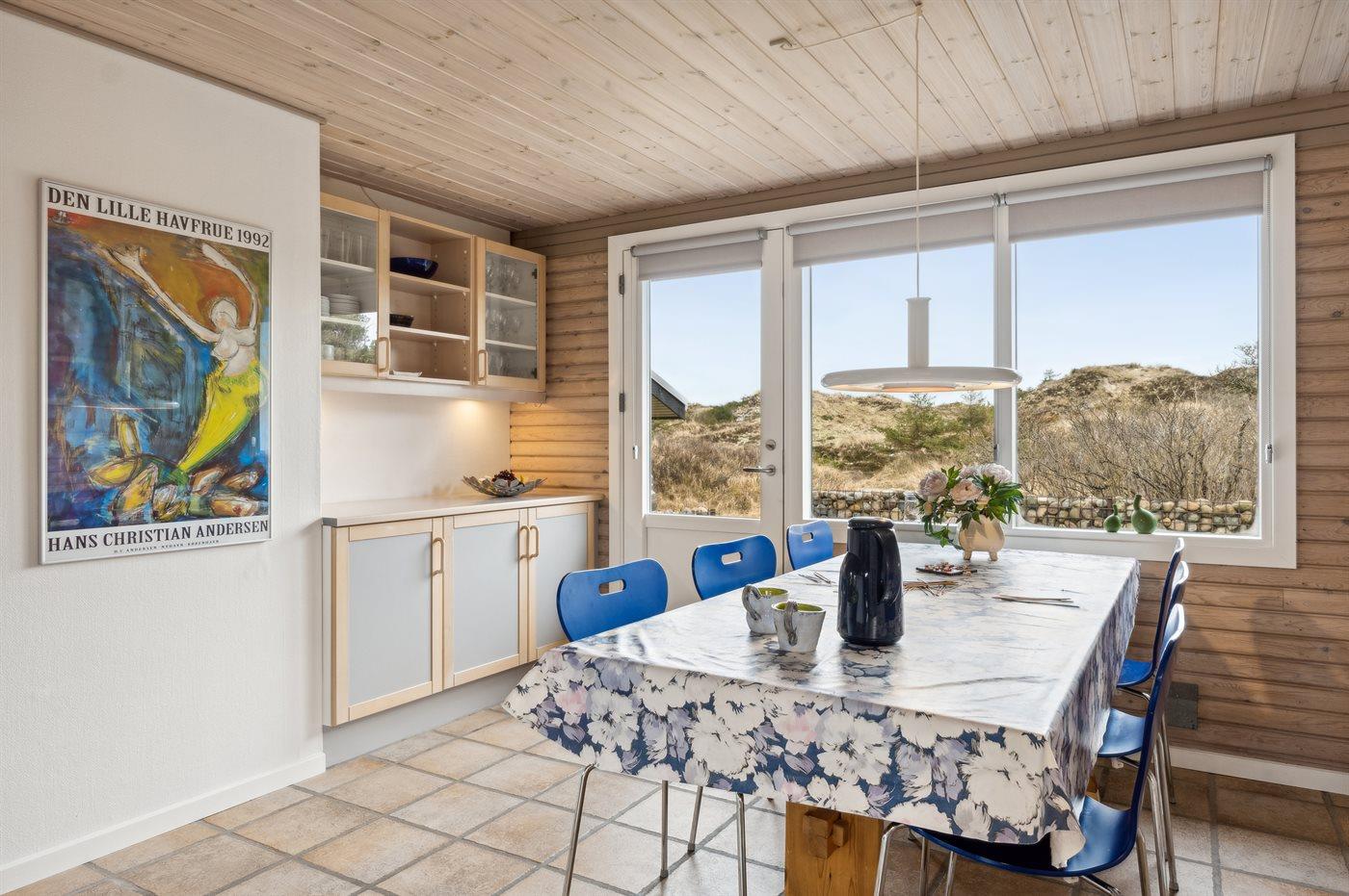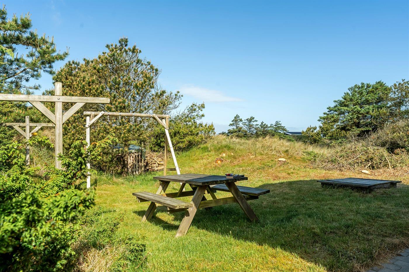 Ferieboligen er beliggende på en 2000 m² stor klitgrund. Der er 1000 m til havet. Nærmeste forretning er beliggende i en afstand af 3500 m. Der er en golfbane i en afstand af 12000 m. Til ferieboligen hører 15 m² terrasseareal. Desuden er der 12 m² overdækket terrasse. Gynge. Sandkasse. Grill til rådighed. Parkering ved ferieboligen.