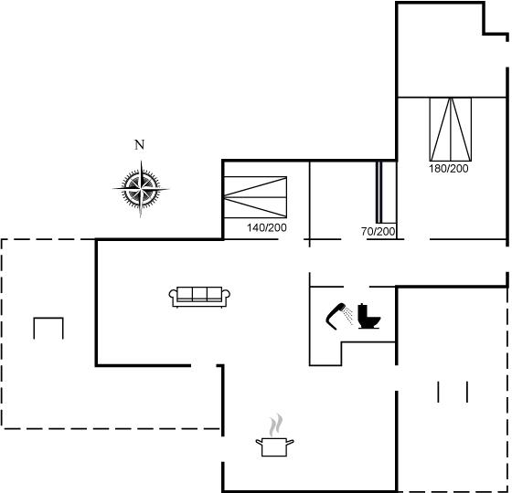 Der er i alt 3 soveværelser. Sovepladserne fordeler sig på: 4 sovepladser i dobbeltsenge. 2 sovepladser i enkeltsenge. Derudover er der 1 stk. barneseng.