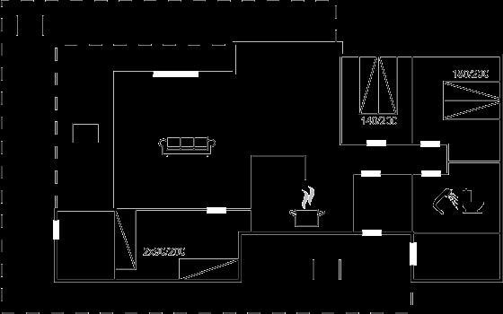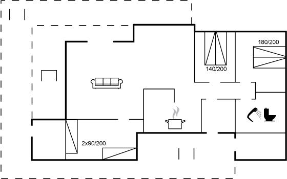 Der er i alt 3 soveværelser. Sovepladserne fordeler sig på: 4 sovepladser i dobbeltsenge. 2 sovepladser i enkeltsenge.