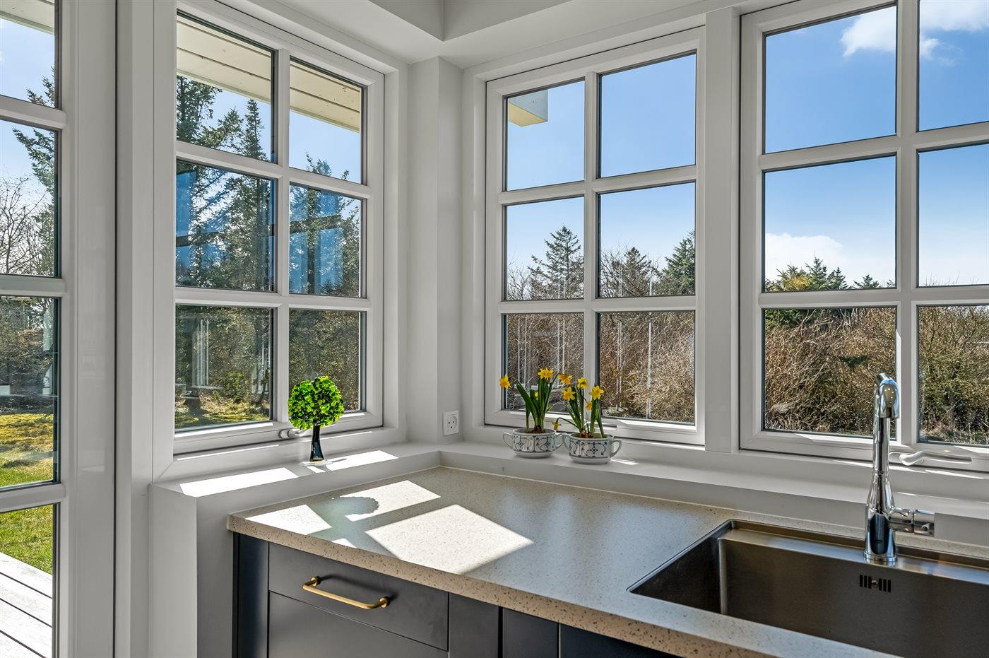 Køkkenet er udstyret med 1 køleskab. Der er 4 induktionskogeplader, varmluftovn, mikrobølgeovn samt opvaskemaskine Der er gulvvarme i køkkenet.