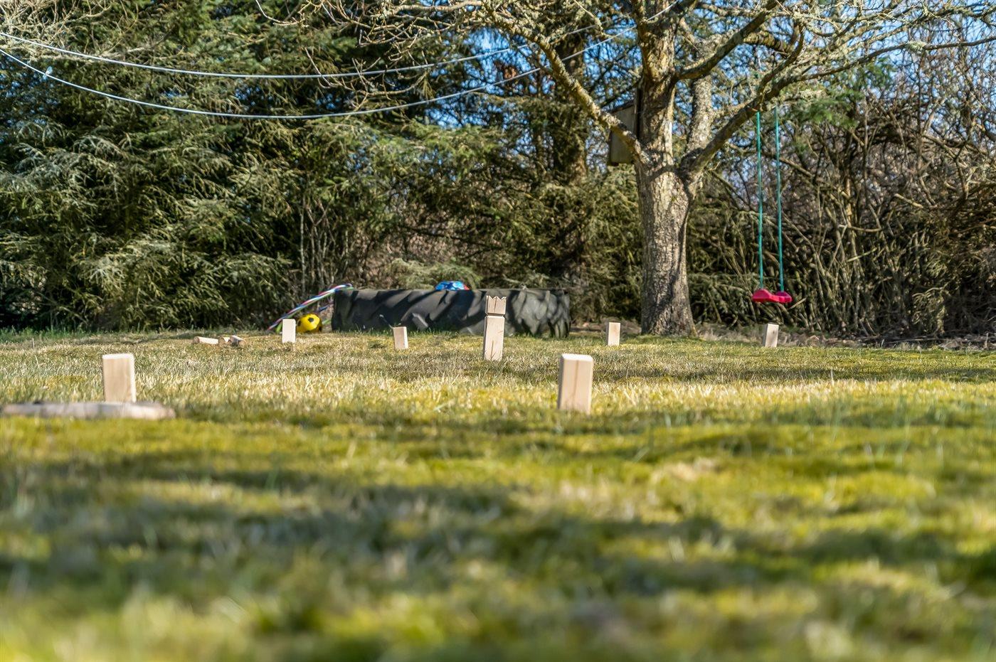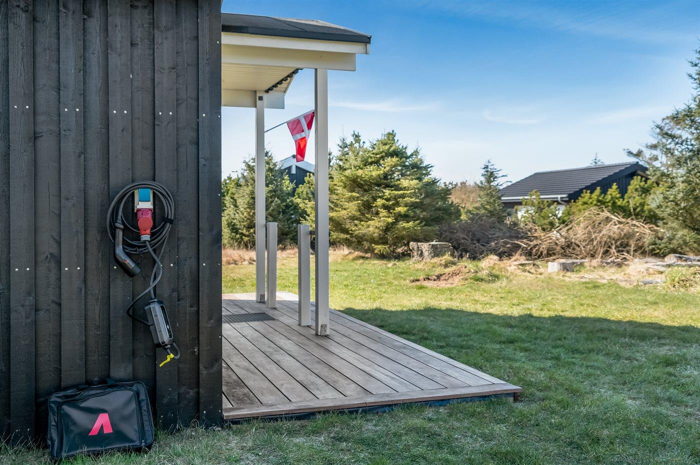 Ferieboligen er beliggende på en 5188 m² stor naturgrund. Der er 1000 m til havet. Nærmeste forretning er beliggende i en afstand af 4000 m. Der er en golfbane i en afstand af 12000 m. Til ferieboligen hører åbent terrasseareal. Desuden er der overdækket terrasse. Der er redskabsrum. Sandkasse. Fodboldmål. Der ligger en legeplads i en afstand af 4000 m. Udendørs bruser. Grill til rådighed. Der er installeret stik til opladning af elbil. Type 2 stik. Med 16 kW ladeeffekt. Parkering ved ferieboligen.