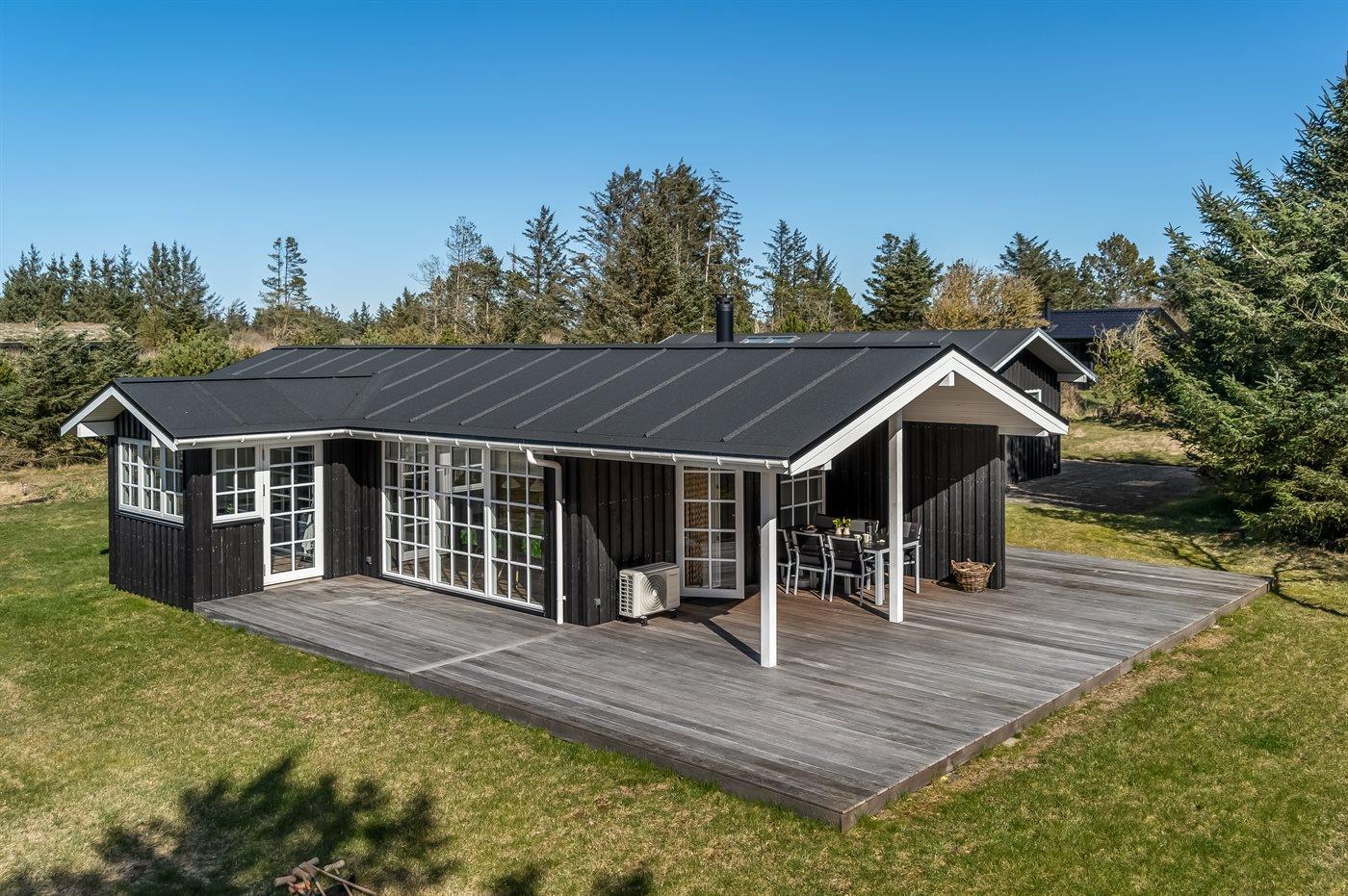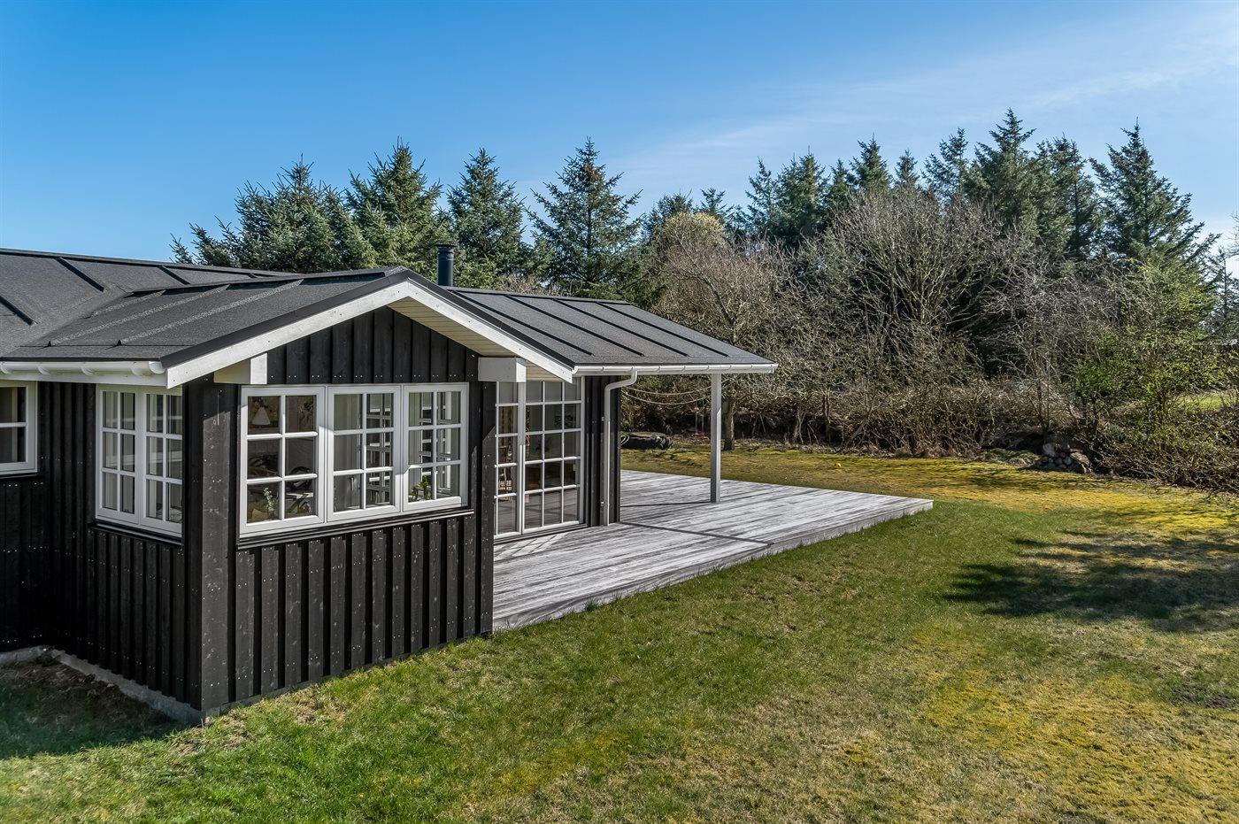 Moderne sommerhus i Saltum med sauna, aktivitetsrum og stor terrasse nær naturen.