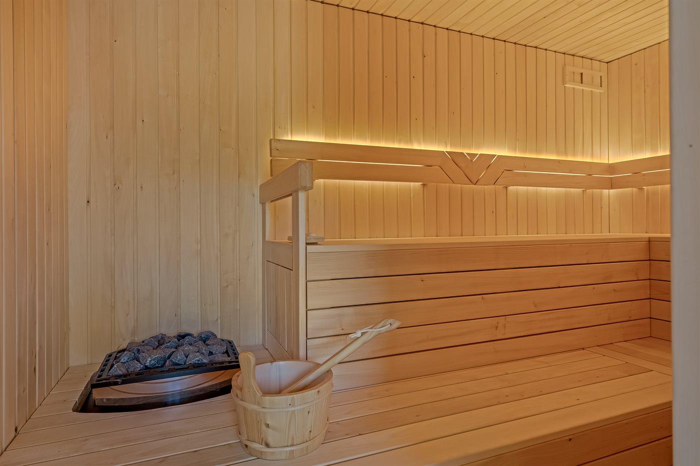 Der er 3 badeværelser med bruseniche og 3 toiletter. Der er gulvvarme på 2 badeværelser. I saunaen er der mulighed for afslapning.
