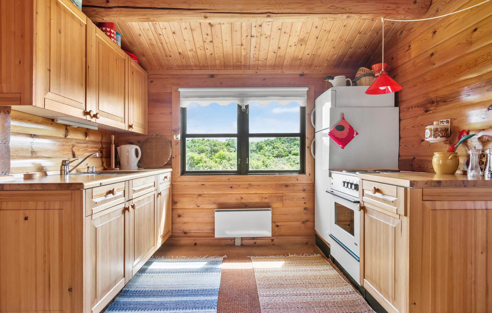 Midt i klitterne, tæt på Saltum Strand og godt gemt væk under det grønne naturtag finder I denne charmerende perle af en feriebolig. Udover hovedhuset er her sovepladser i annekset, så I kan rejse som en større flok, uden at skulle sidde på skødet af hinanden. Indretningen emmer af hygge med varme træpaneler, loft til kip og åbent boligkoncept, der forener køkken og stue og får dejlige lysindfald og udsigt til klitterne og vandet gennem de sprossede vinduer. Efter en dejlig dag på farten kan I tilberede familiens livretter i det veludstyrede køkken og flade ud i sofaen med hver jeres bog eller en god film, inden I går til køjs.