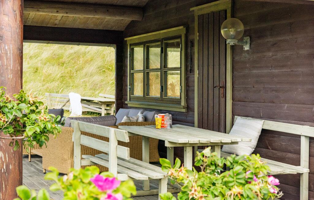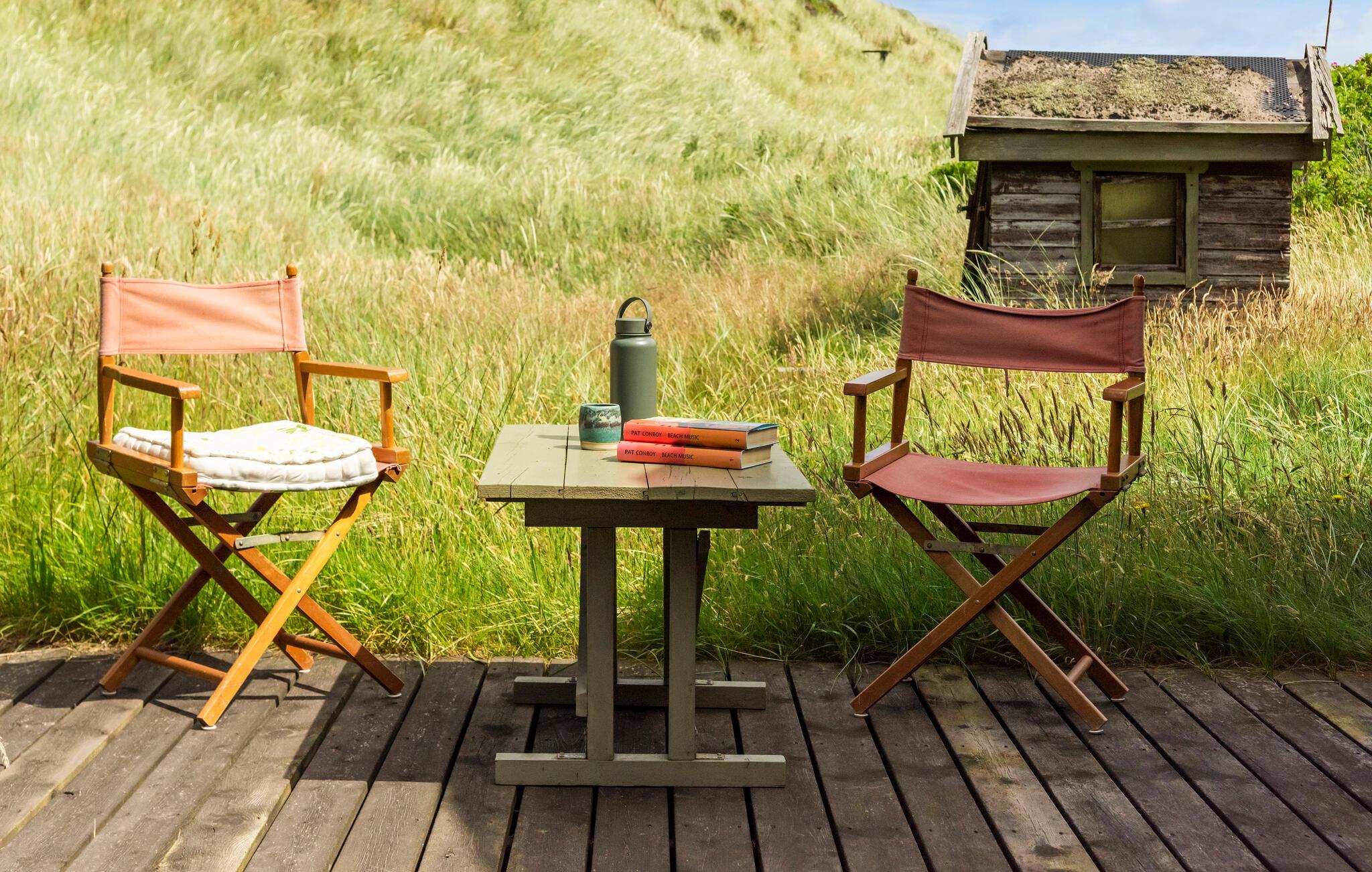 Huset ligger på en skøn grund med to terrasser. På den ene kan I nyde solen nærmest midt i klitterne, og på verandaen foran huset kan I nyde de farverige solopgange over Jammerbugt med et godt glas vin.
