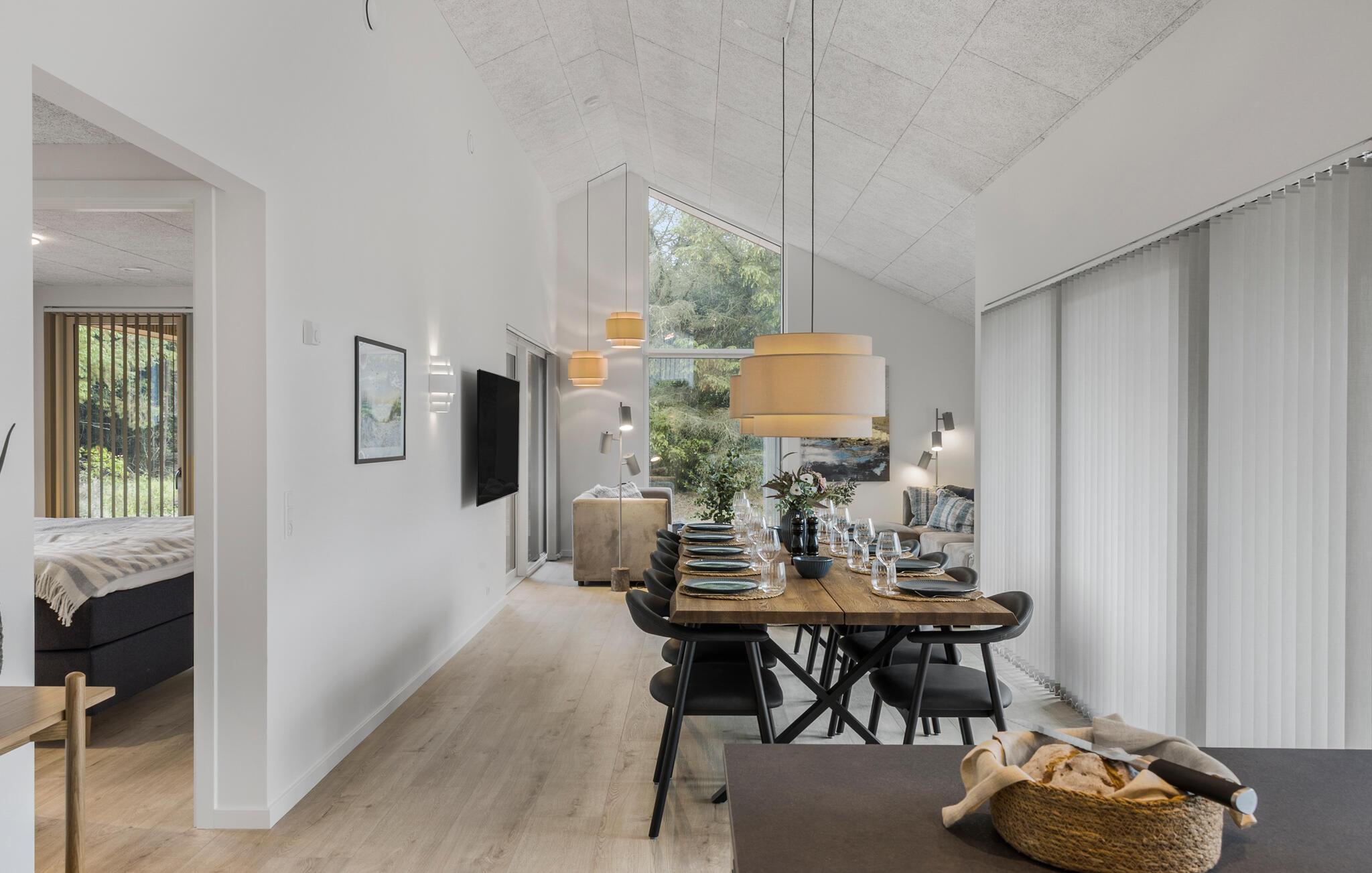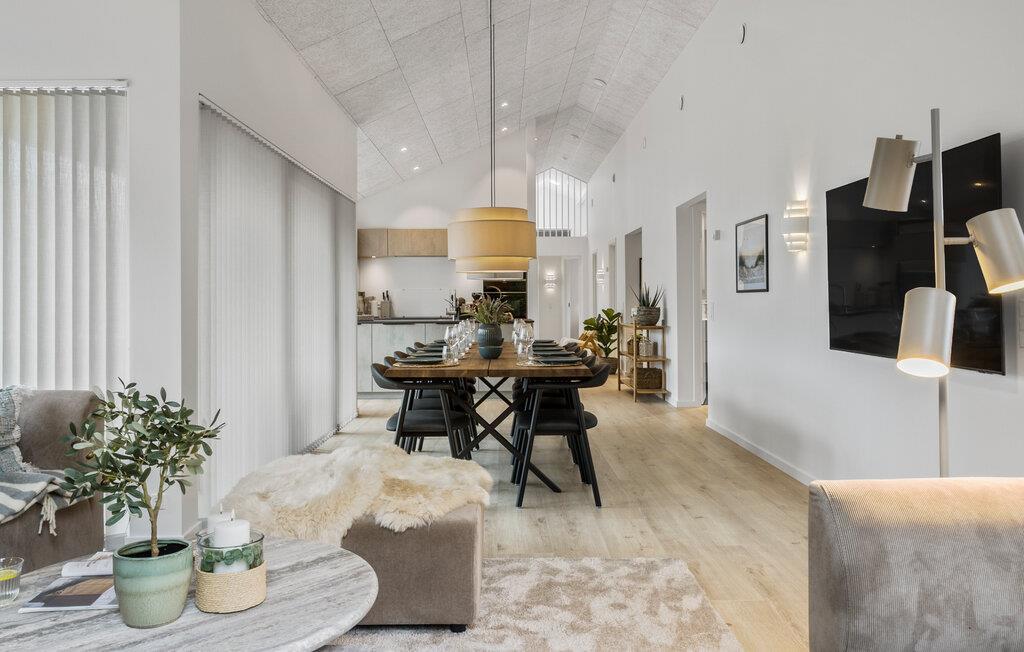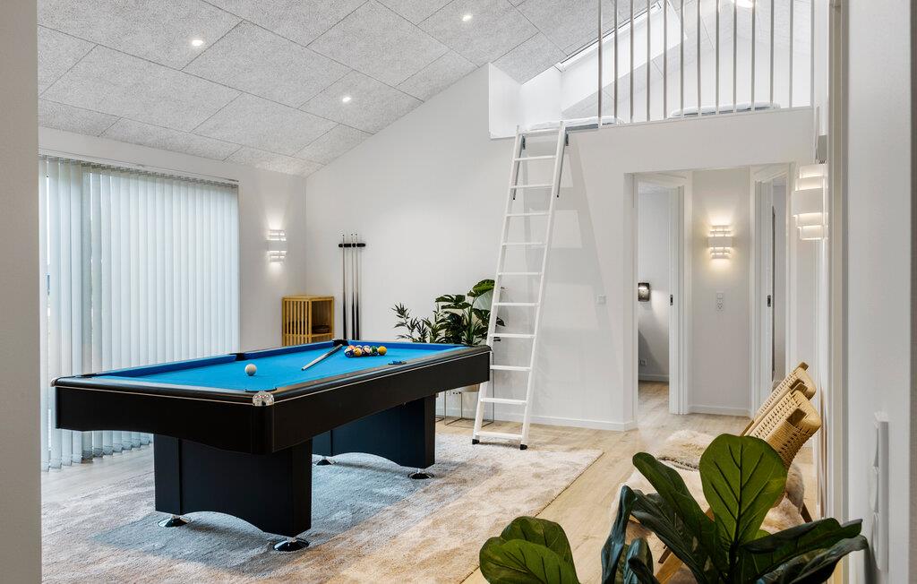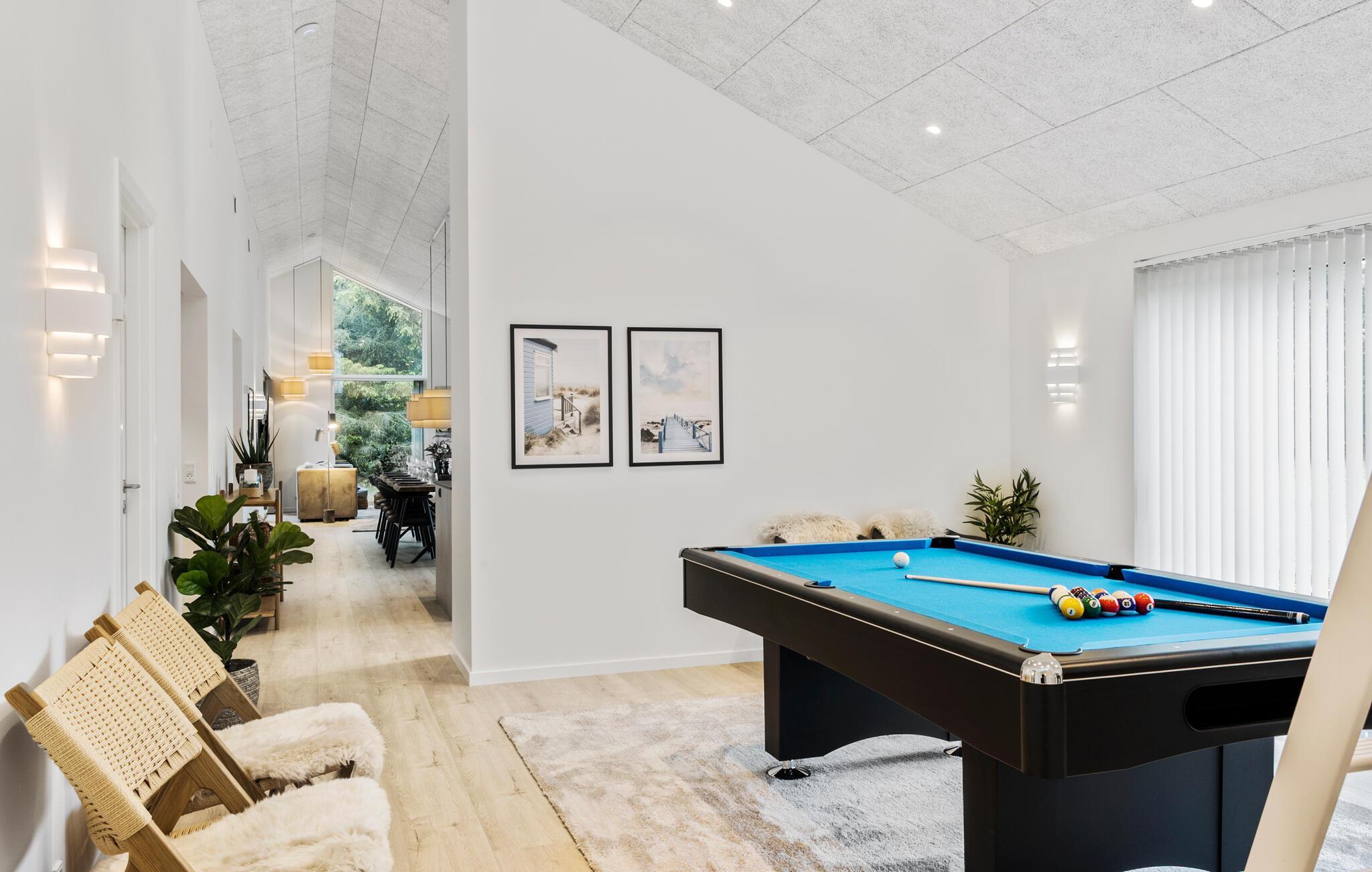 Dette luksuriøse og arkitekttegnede sommerhus giver jer masser af plads til at nyde det stilfulde interiør og de moderne faciliteter, også når I er en større familie eller en gruppe venner. I kan glæde jer til hyggelige måltider ved det stemningsfuldt oplyste spisebord, dyste ved poolbordet, mødes til afslappede filmaftener i den hyggelige stue eller snakke til langt ud på aftenen over et glas vin.