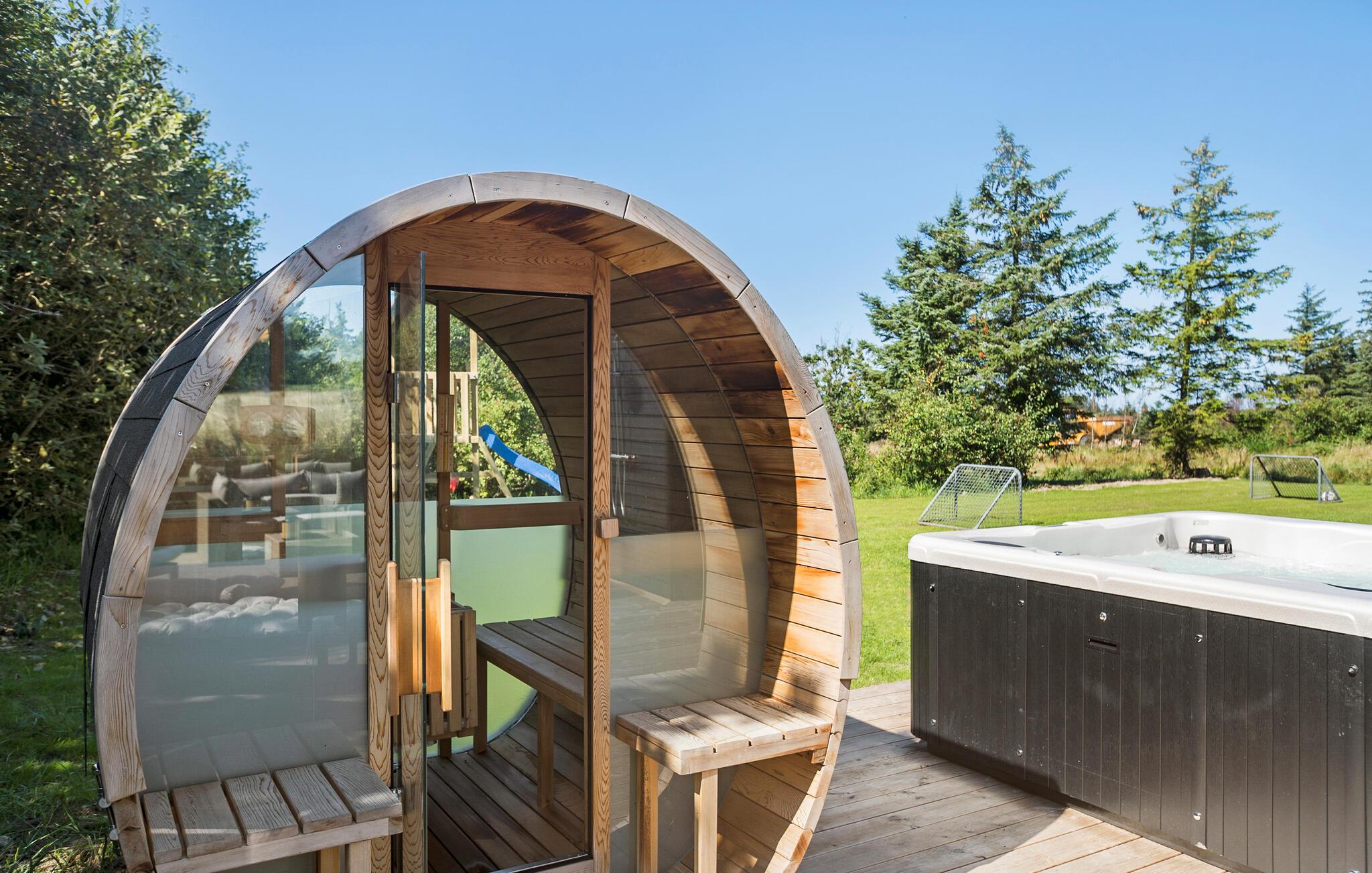 Tag på familieferie i dette lækre sommerhus, hvor I kan slappe af i spaen og saunaen og skrive flere sider i mindebogen.