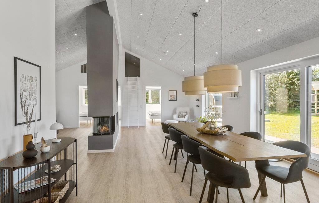 I dette lækre sommerhus er fokus komfort, afslapning og gode ferieminder. Her er plads til hele familien med underholdning i aktivitetsrummet for både børn og voksne. Huset er lyst og de store vinduer giver et fantastisk lysindfald, ligesom I kan kigge ud på den store have. Indretningen er stilren og indbydende med en central pejs i køkken-alrummet. I det veludstyrede køkken kan I udfolde jeres madlavningstalenter, og servere lækker mad til hele familien. Om aftenen kan I slænge benene i sofaen og sætte en fælles film på tv’et.