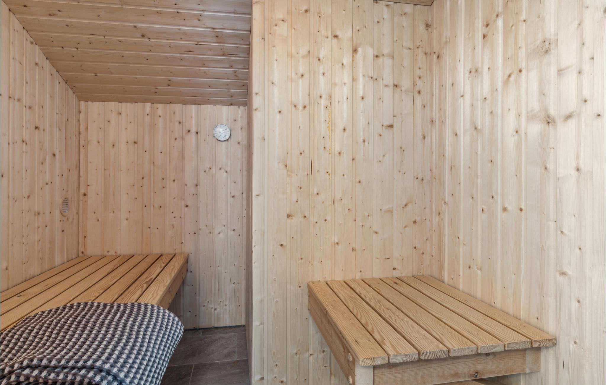 På en dejlig klitgrund få minutters gang fra Vesterhavet og med en fantastisk udsigt til havet og klitterne fra en bakketop på grunden, har dette skønne feriehus en perfekt beliggenhed. Det er bygget i forskudte plan. I træder ind i et lille bryggers og derfra direkte ind i den lyse poolafdeling med muret spabad og indgang til sauna og badeværelse. Fra poolrummet går I et par trin op til den hyggelige spiseafdeling, der ligger i forbindelse med et mindre, men fuldt udstyret køkken. For enden af rummet er der en hyggelig stue med behagelige møbler. Huset har loft til kip og trægulve på værelserne og resten af huset har opvarmede klinkegulve. Der hører dejlige såvel overdækkede som åbne træterrasser til huset.