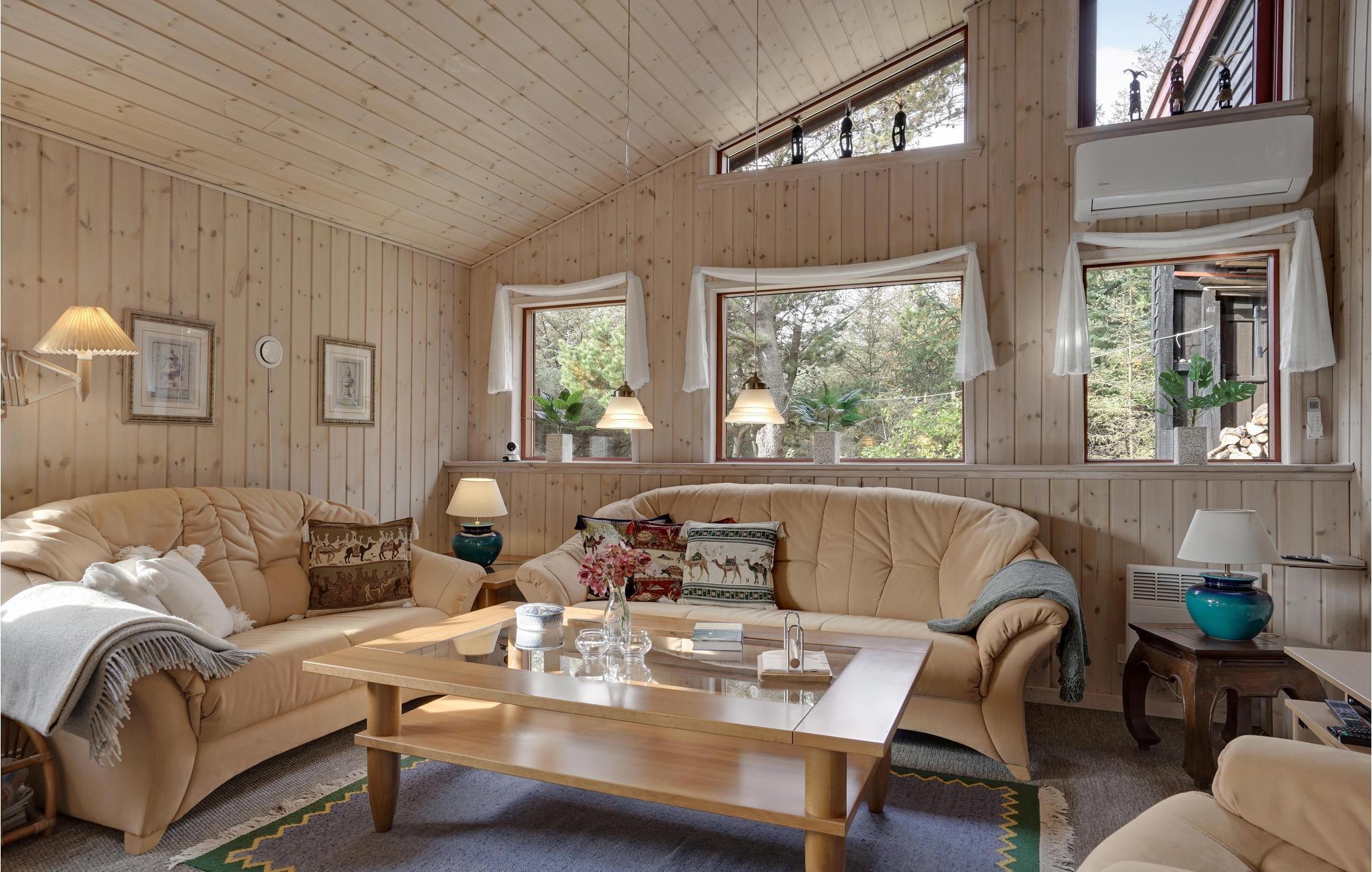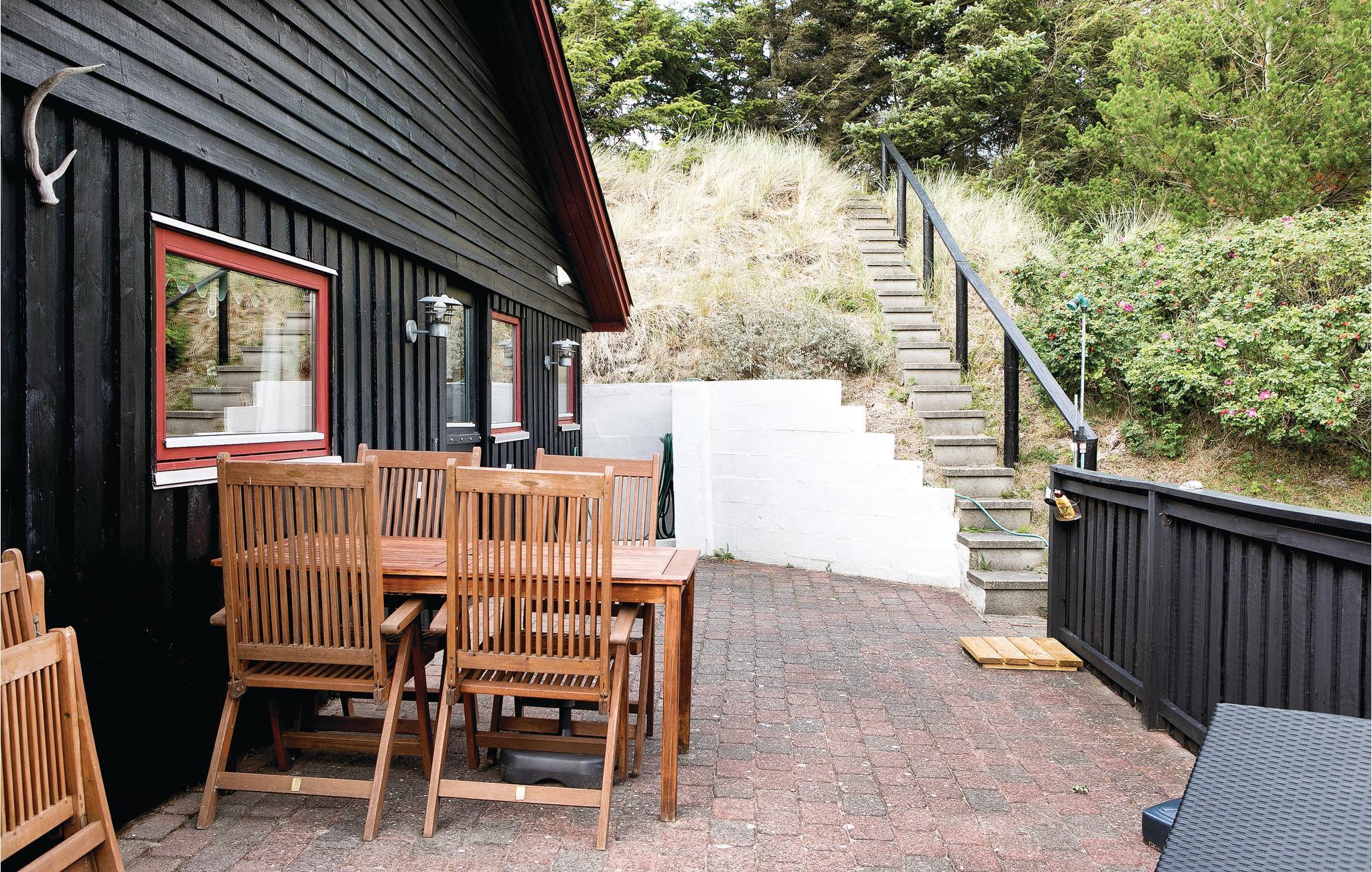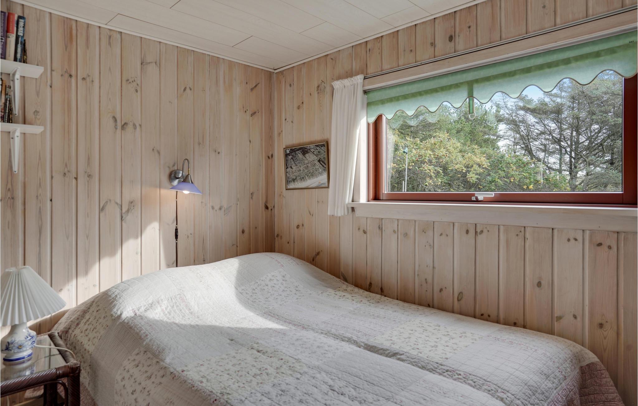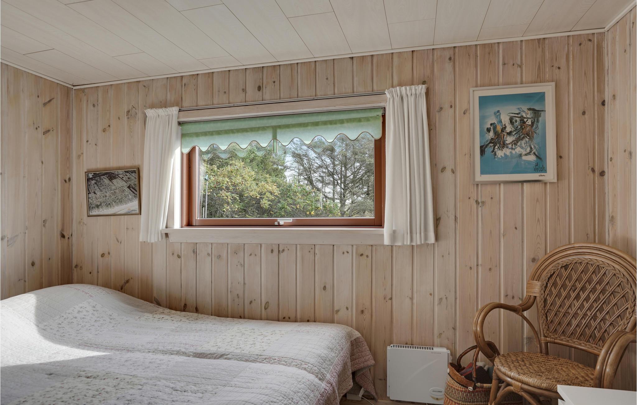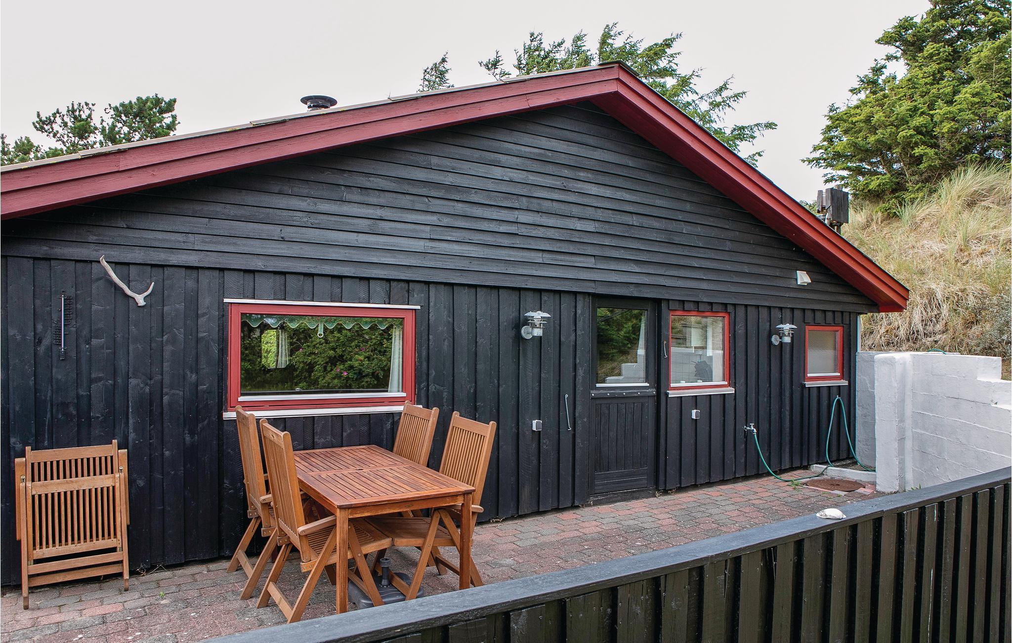 På en helt ugenert naturgrund med bevoksning, hyggelige kroge og gode terrasseforhold ligger dette hyggelige feriehus. Fra den lille entré kommer I ind i en hyggelig og personlig møbleret stue med loft til kip, derfra er der et trin op til et mindre køkken. Endvidere findes der et stort badeværelse samt to soveværelser med hhv. en dobbeltseng og en 3/4 personers seng. På grunden går en trappe op til en bakketop, hvorfra der er en fantastisk udsigt til Vesterhavet og klitterne. Når I lejer dette feriehus, får I en dejlig ramme til en skøn ferie.