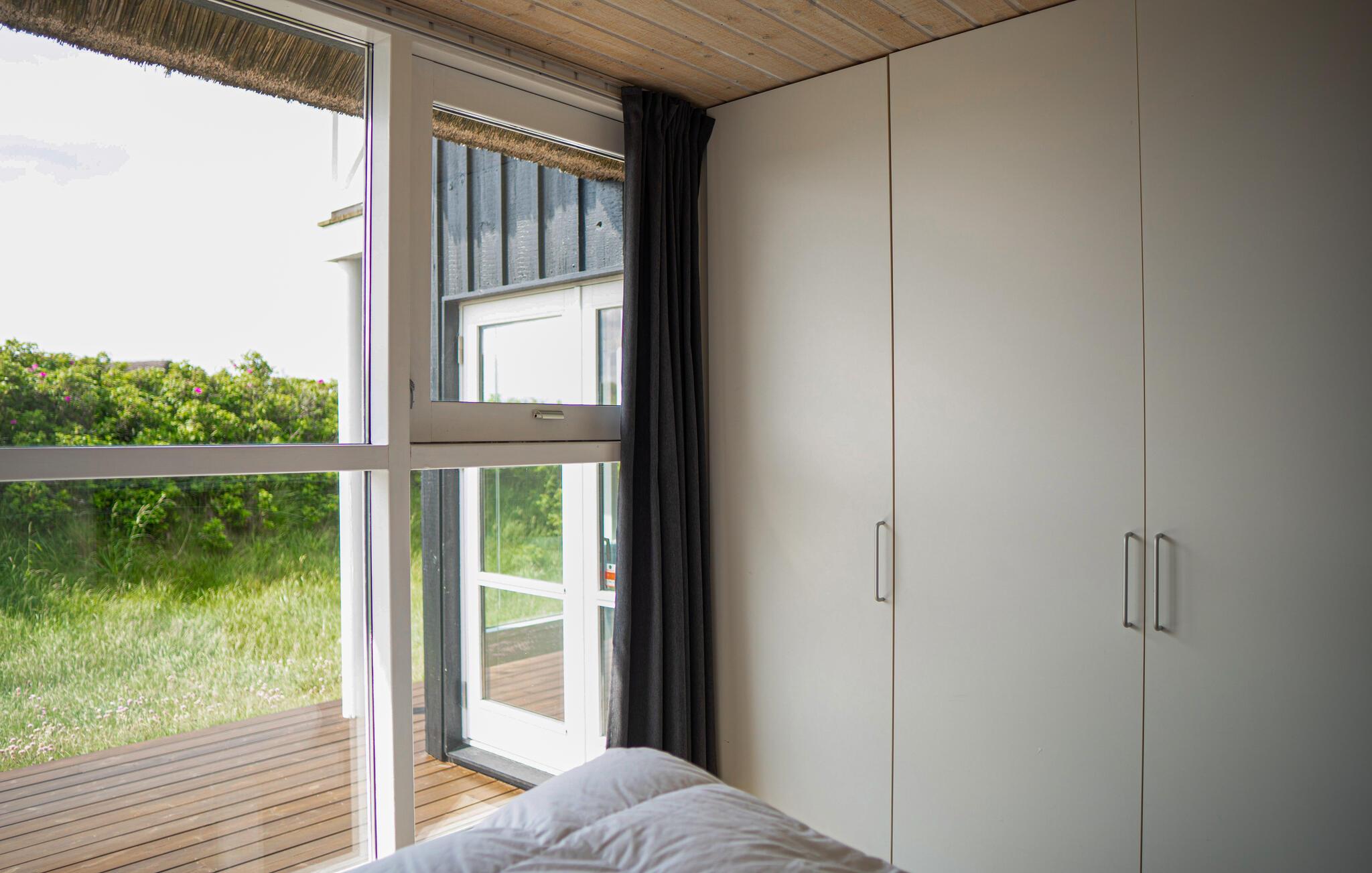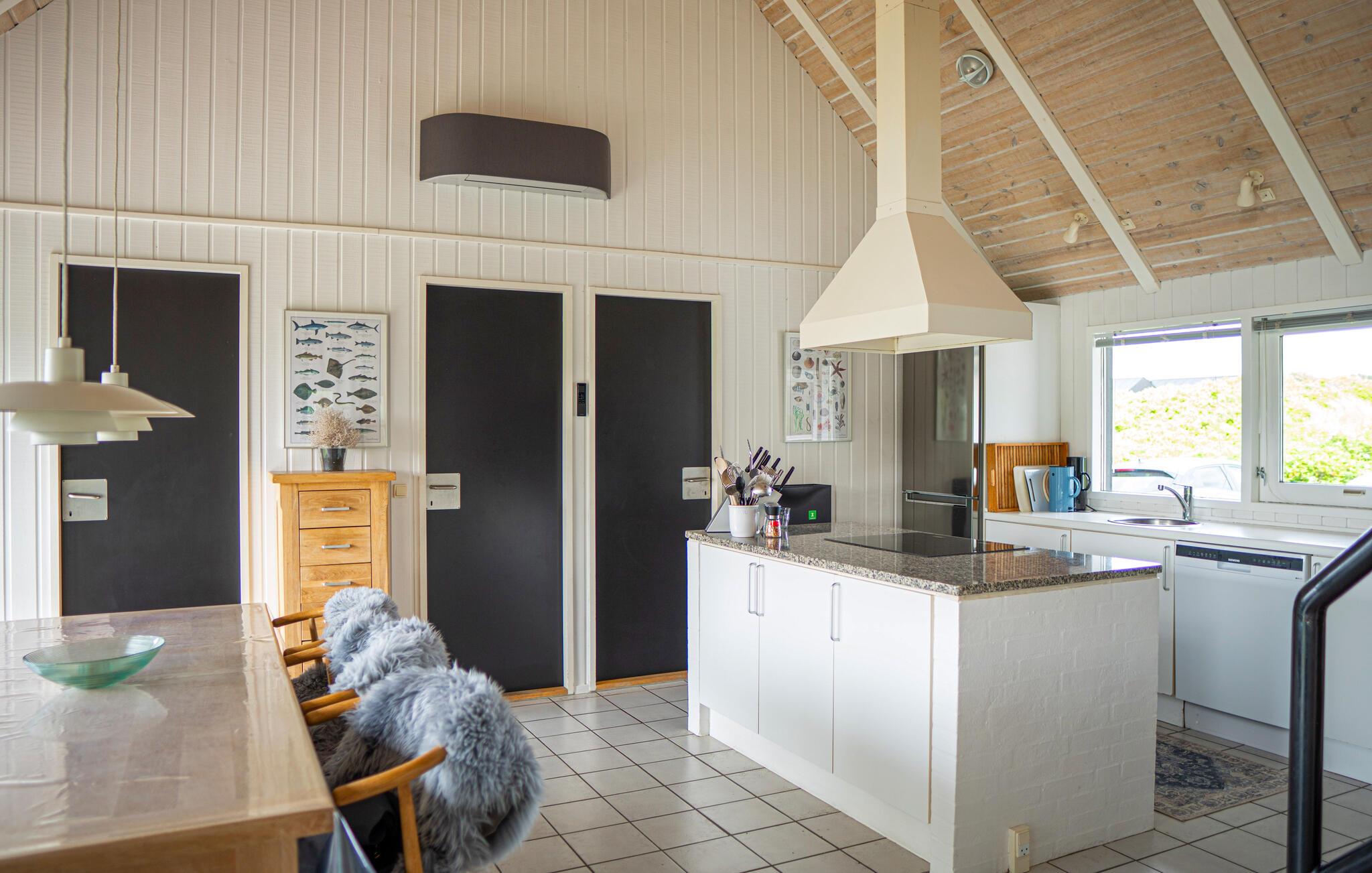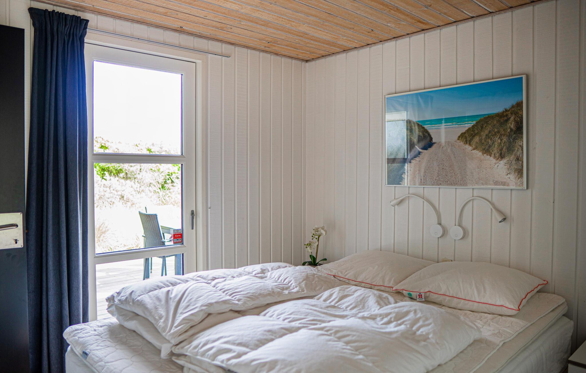 Ved et af Danmarks smukkeste kystområder ligger dette feriehus. Ved den kuperede klitgrund er der nedkørsel direkte til stranden. Huset falder godt ind i naturen, da det er bygget af træ og har stråtag. Den store poolafdeling indeholder en stor swimmingpool til glæde for hele familien. I det ene af husets to badeværelser findes den fire pers. spa. Huset er lyst og venligt indrettet og møbler samt farvevalg er nøje afstemt. Fra såvel stuen som poolafdelingen er der udgang til læfyldte terrasser. Fra stuen på første sal er der udgang til en flot balkon, hvorfra der er en dejlig udsigt over Vesterhavet og klitterne. Garagen har automatisk portåbning-/lukning.