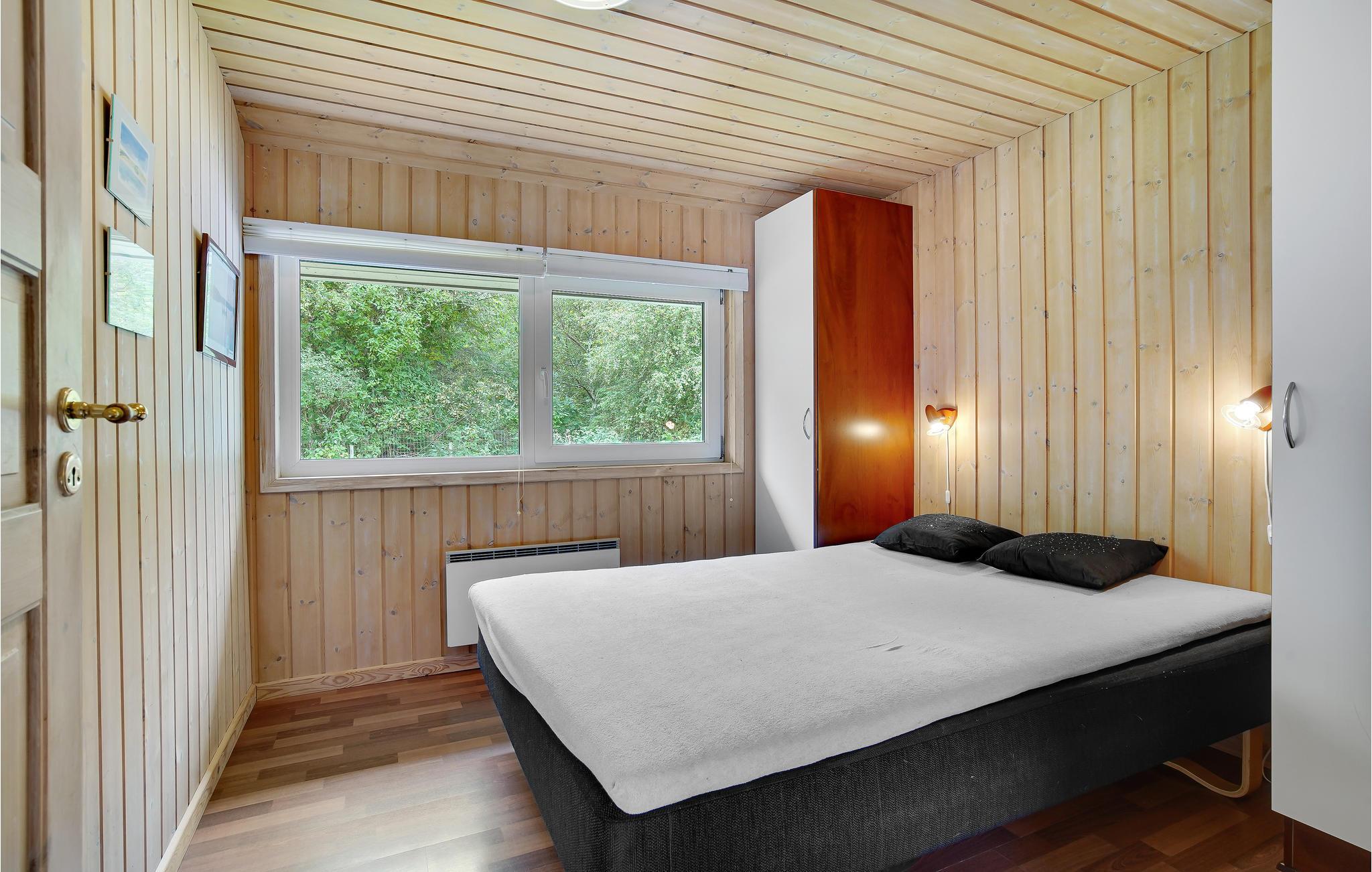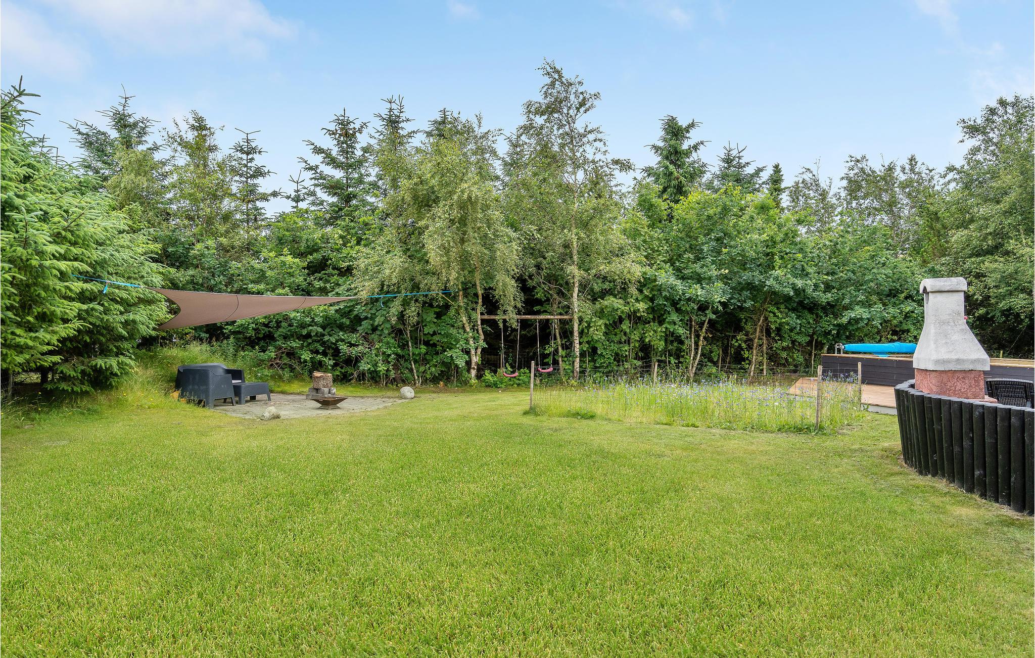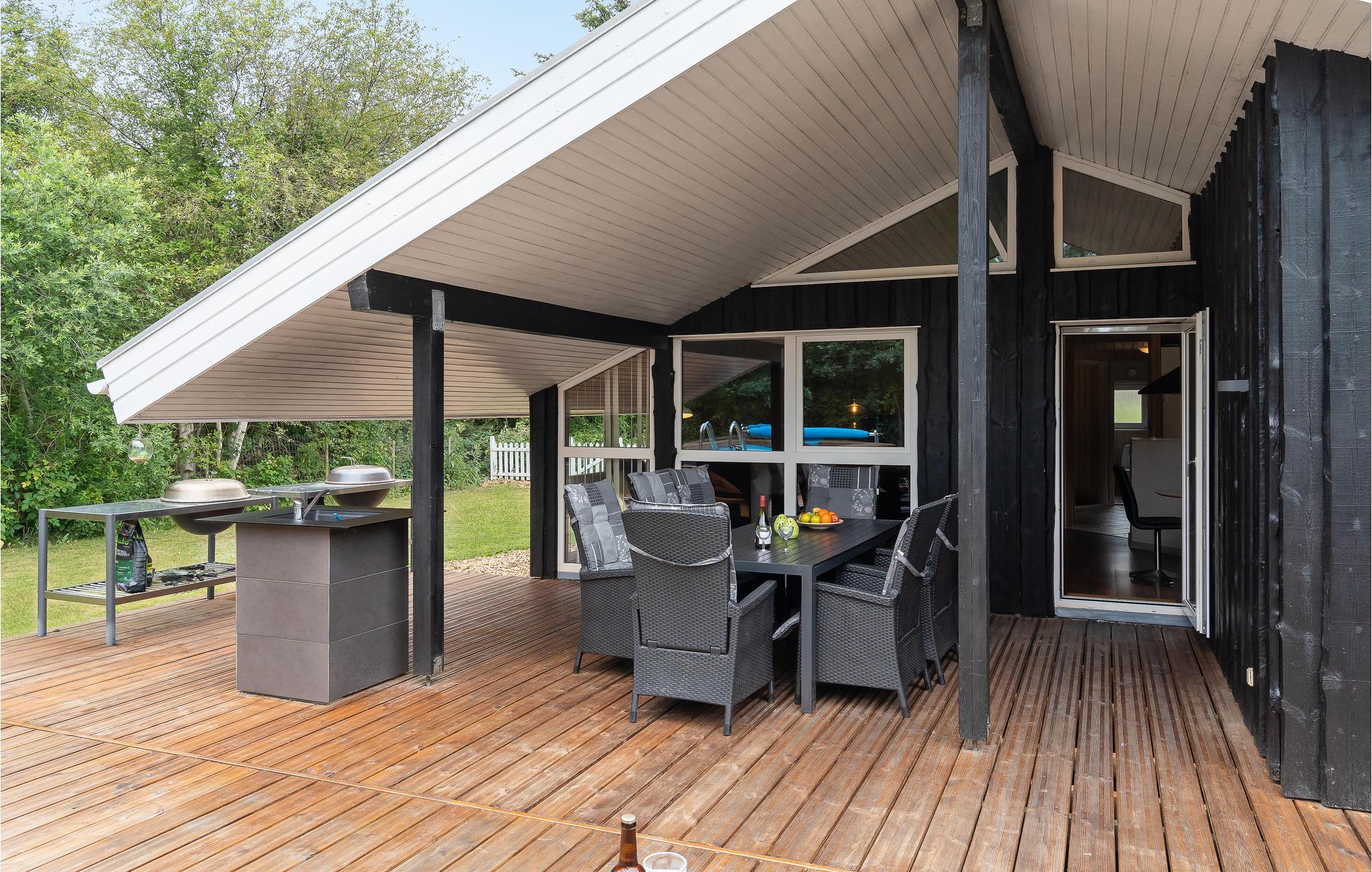 Huset er indrettet med tre gode soverum – 2 med dobbeltseng og det sidste med 4 køjer. Endvidere er der mulighed for opredning på hemsen. Huset byder også på et stort badeværelse med adgang til sauna og spa samt et gæstetoilet. Køkkenet ligger i åben forbindelse med stuen, så der er mulighed for at følge med i aktiviteterne, mens der laves mad. Desuden kan børnene spille og streame sjove film via en 50/50 internetforbindelse. Fra stuen er der adgang til en lækker stor terrasse, hvor husets store højdepunkt befinder sig - den udendørs pool. Poolen er tilgængelig fra og med uge 21 til uge 38. Her er virkelig lagt op til mange timers sjov og leg. På den dejlige terrasse kan man nyde børnenes leg i poolen, mens de friske kartofler og grøntsager bliver skyllet i det udendørs køkken. Om aftenen, når duggen falder, kan I krybe ind under den overdækkede terrasse, eller ned i den hyggelige havepavillon.